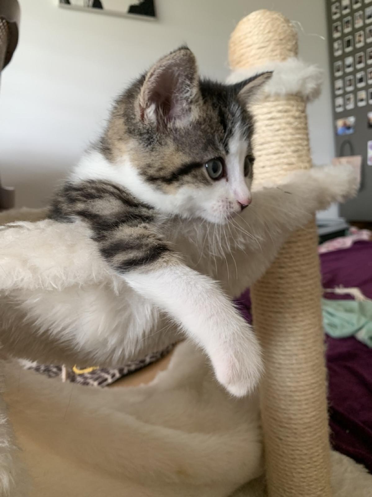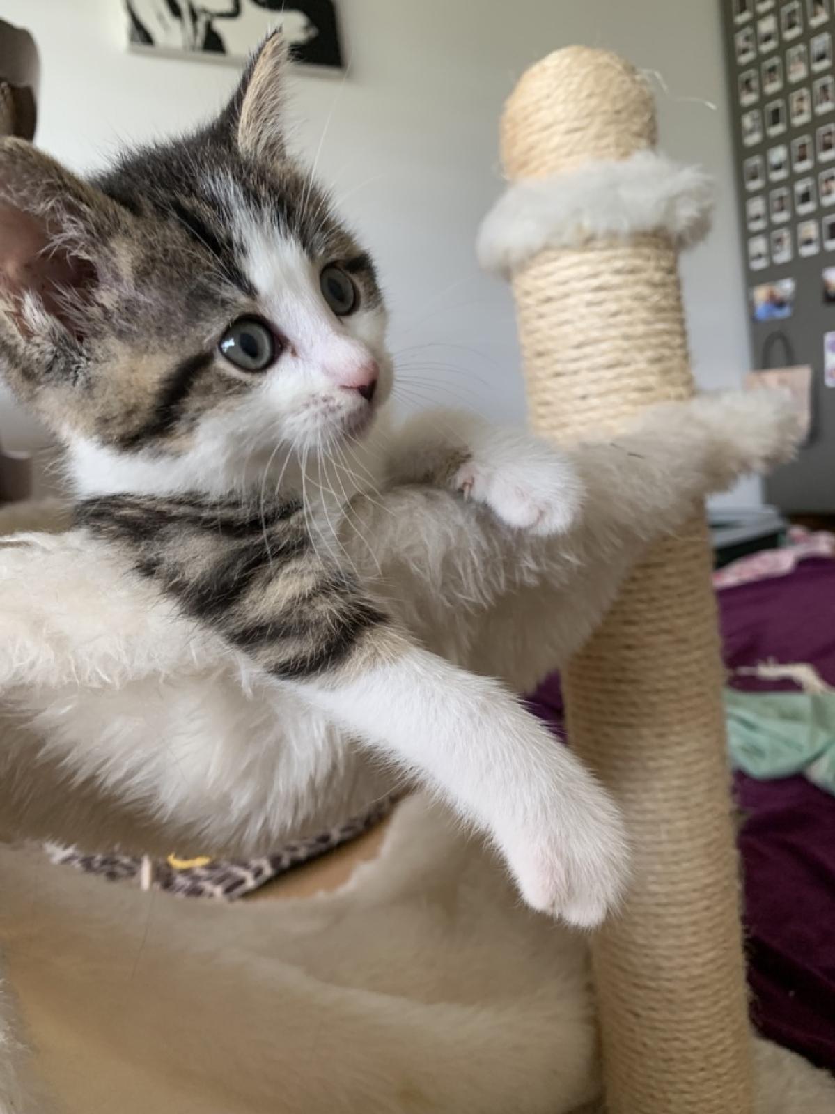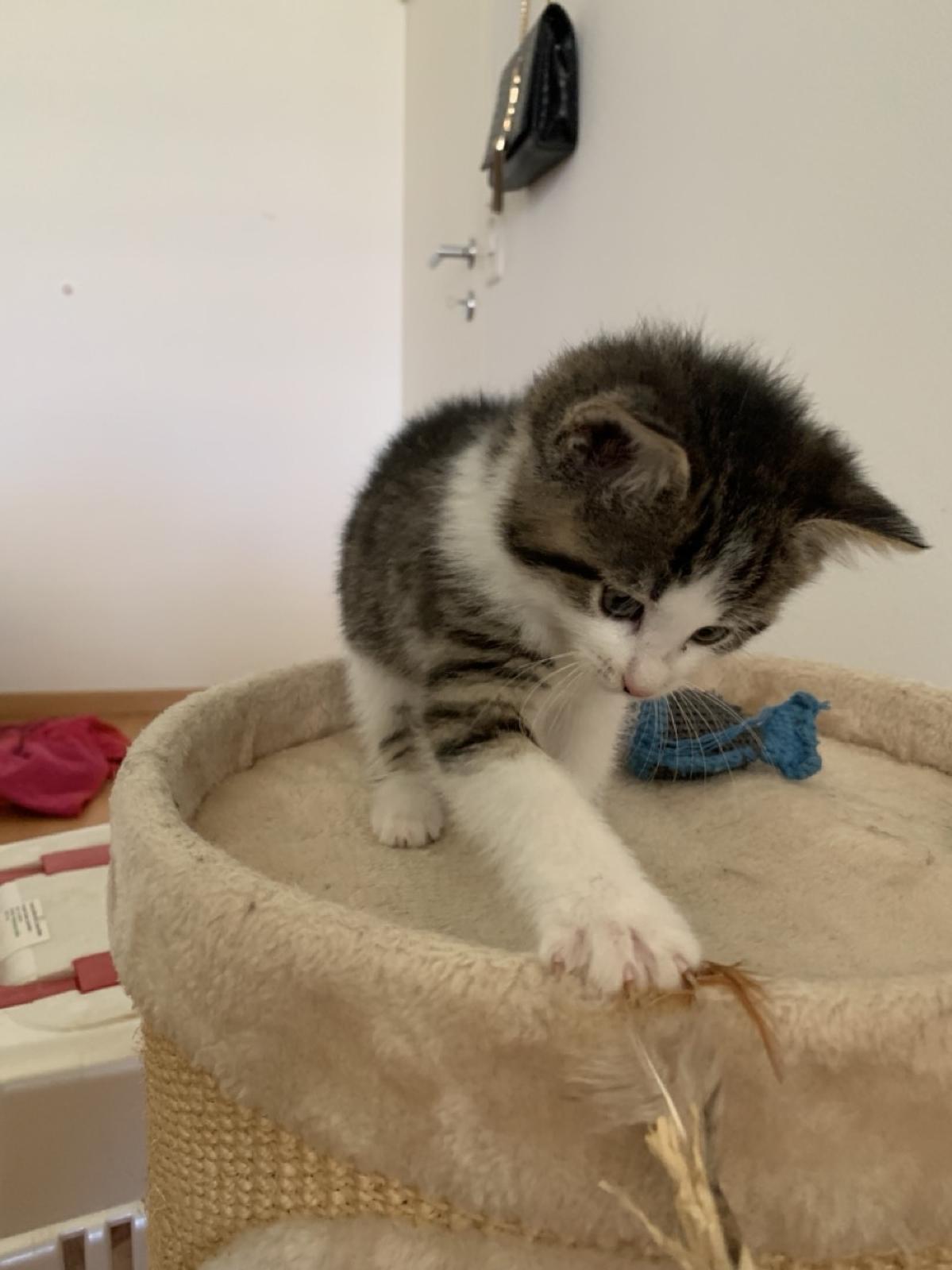 Ela klettert für ihr Leben gern: Auf Kratzbäume und Möbel, aber am liebsten auf einen Schoss. Ihr bezauberndes Schnurren ist dabei ihre Eintrittskarte in jedes Menschenherz. Da verzeiht man ihr auch, dass sie den Unterschied zwischen Klettergerüst und Menschenkörper nicht so ganz versteht und sich mit ihren Krallen gerne mal bis auf Augenhöhe an einem hochhangelt. Ela ist unglaublich Menschenbezogen und freut sich über ganz viel Aufmerksamkeit.