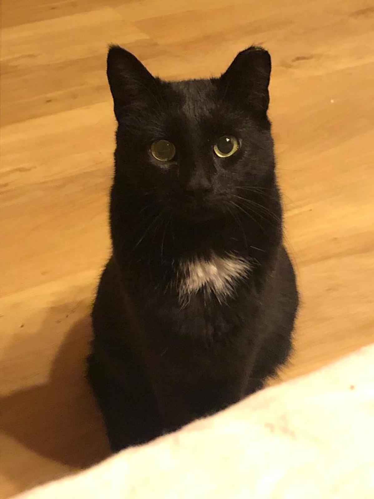 Flöckli stammt von einem alten Hof, wo die Katzen zwar gefüttert werden, aber ansonsten nichts weiter unternommen wurde. So wurden es immer mehr Katzen, der Rest regelte die Strasse und die Natur. Glücklicherweise durfte der Verein dort alle Katzen einfangen und kastrieren. Eine von vielen war Flöckli. Unscheinbar schwarz, mit einer Schneeflocke auf der Brust. Eher scheu und vorsichtig, lieber im Hintergrund.