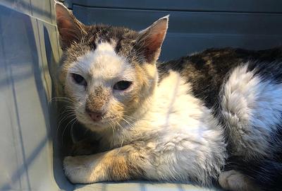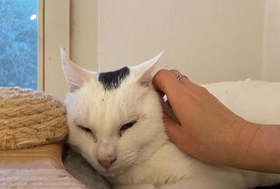 Gipsy ist im Moment durch sein Fieber noch sehr schwach. Geduldig lässt er alles mit sich machen, dabei schnurrt er immer mal wieder und drückt seinen Kopf an meine Hand. Draussen liess er sich zwar nicht anfassen, aber wer weiss, was er alles erlebt hat. Gispy verbringt den Tag im Moment mit schlafen und fressen, für mehr reicht seine Kraft nicht, ausserdem ist er in Quarantäne, darum kann über seinen Charakter im Moment keine Aussage getroffen werden.