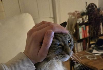 Cocco ist noch sehr ängstlich, er steigt aber gern auf den Kratzbaum wenn niemand im Zimmer ist. Er braucht Menschen mit viel Geduld, um Vertrauen aufbauen zu können.