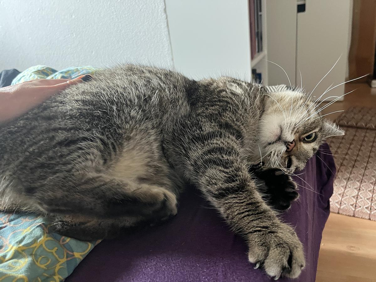 Ich habe Alva Anfang Juli zu meinem bestehenden Katzenpaar (Kater, Kätzin, beide auch schon älter) aus dem Auslandtierschutz adoptiert, nachdem meine dritte Katze im Frühling gestorben war. Alva wurde laut Beschreibung als junge Streunerin von Tierschützern eingefangen und lebte dann auf einer Pflegestelle. Sie war schon damals aufgeschlossen dem Menschen gegenüber und verstand sich auch mit anderen Katzen sehr gut.