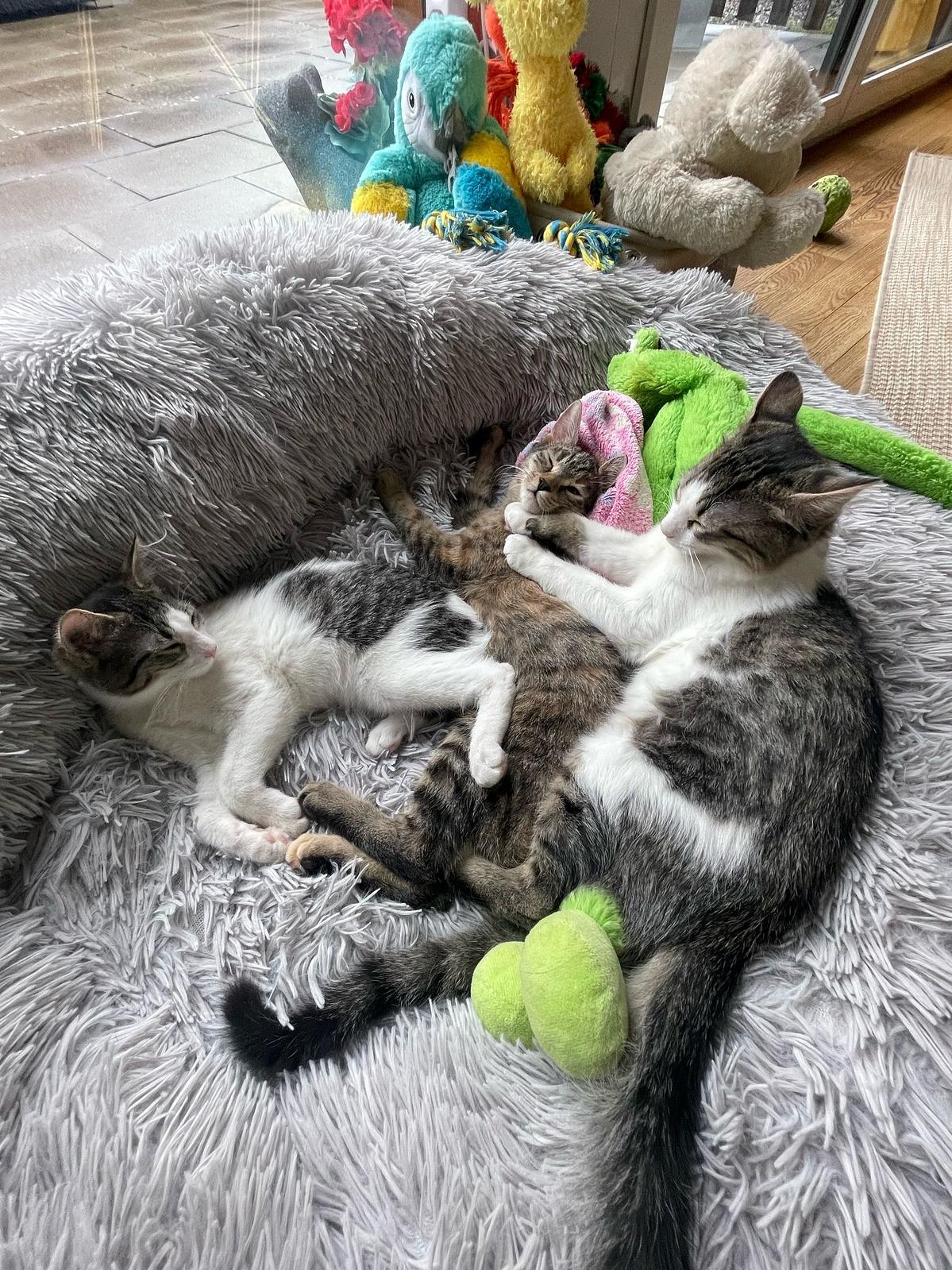 Aeolia , Anais und Aslan sind sehr verschmust und kommen sehr gut aus untereinander. Wir haben uns entschlossen, sie nicht zu trennen und nur zusammen zu vermitteln. Ist natürlich auch einfacher; keine Zusammenführung, keine Rivalität und Zoff...