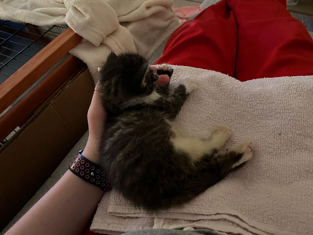 Leider erlaubte sie uns nicht die kitten noch dort zu lassen um zu beobachten ob die Mama wirklich weg ist.