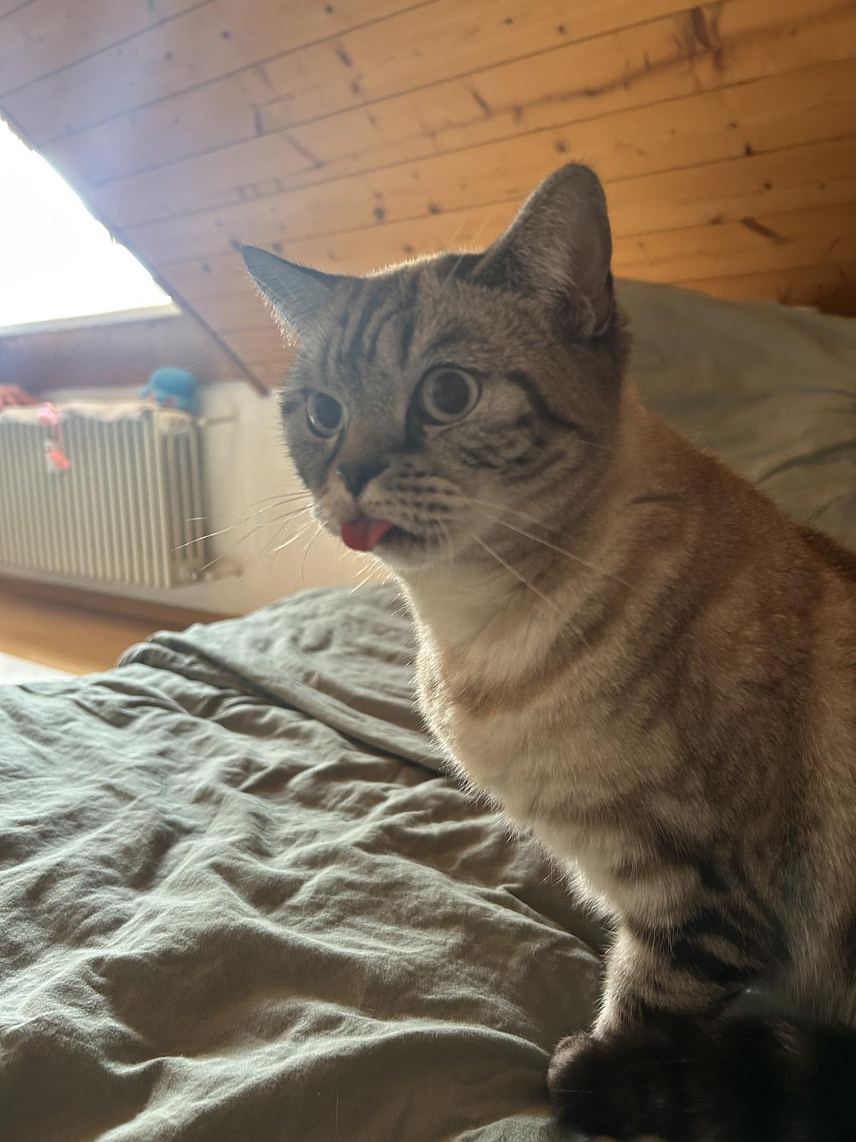 Die Katze ist verspielt, verschmust, liegt gern bei dir, ist sehr freundlich und im Vergleich zu Peri etwas ruhiger.