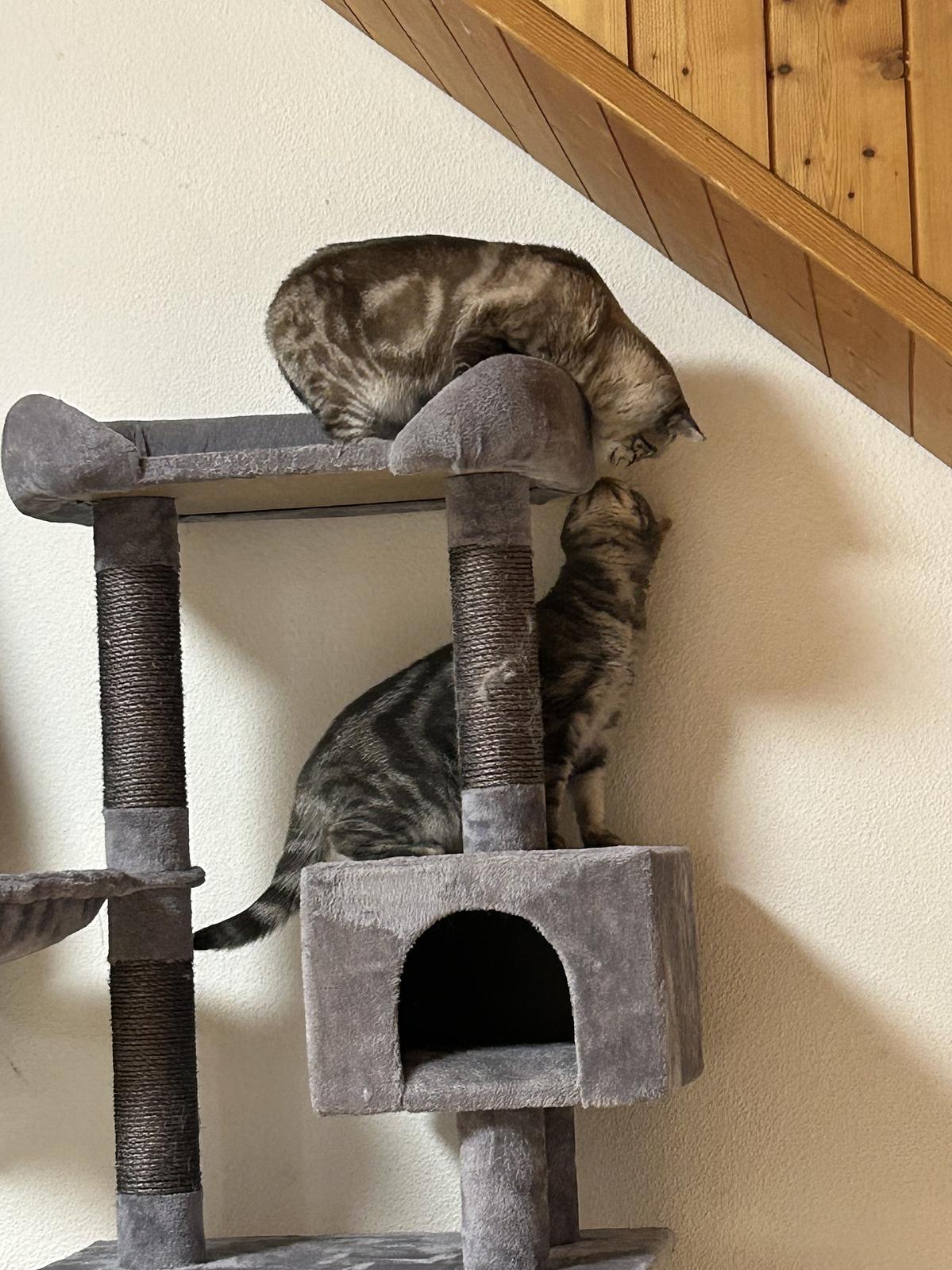 Meine Mutter hat mir die Katzen zu meinem Geburtstag geschenkt, und natürlich habe ich sie sofort ins Herz geschlossen. Leider hat sie nach ein paar Monaten eine starke Allergie gegen die Katzen entwickelt. Aus gesundheitlichen Gründen ist es deshalb nicht mehr möglich, dass sie bei uns bleiben.