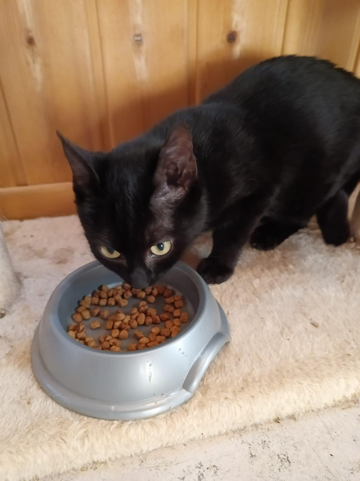 Chaska der schöne schwarze Kater war am Anfang ziemlich frech, wenn es ums Fressen gegangen ist und hat alle angefaucht.