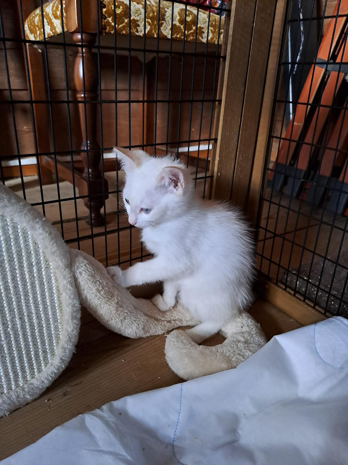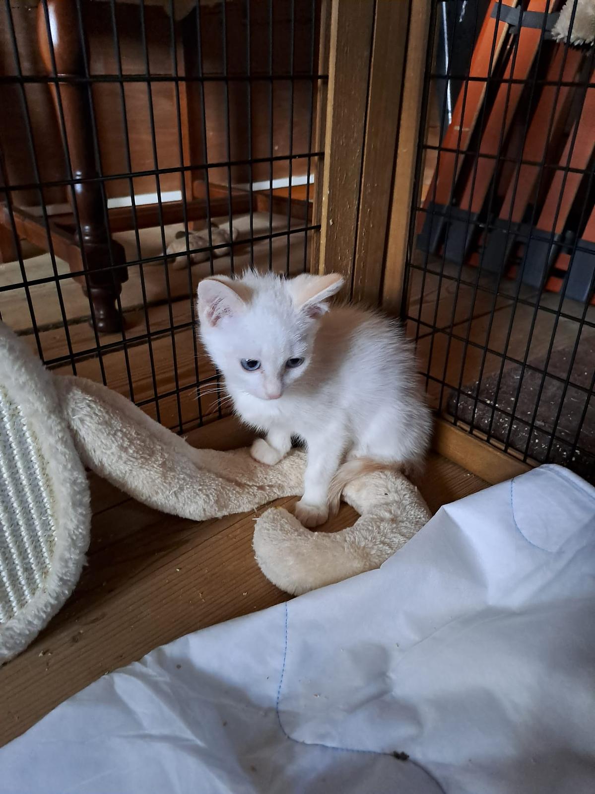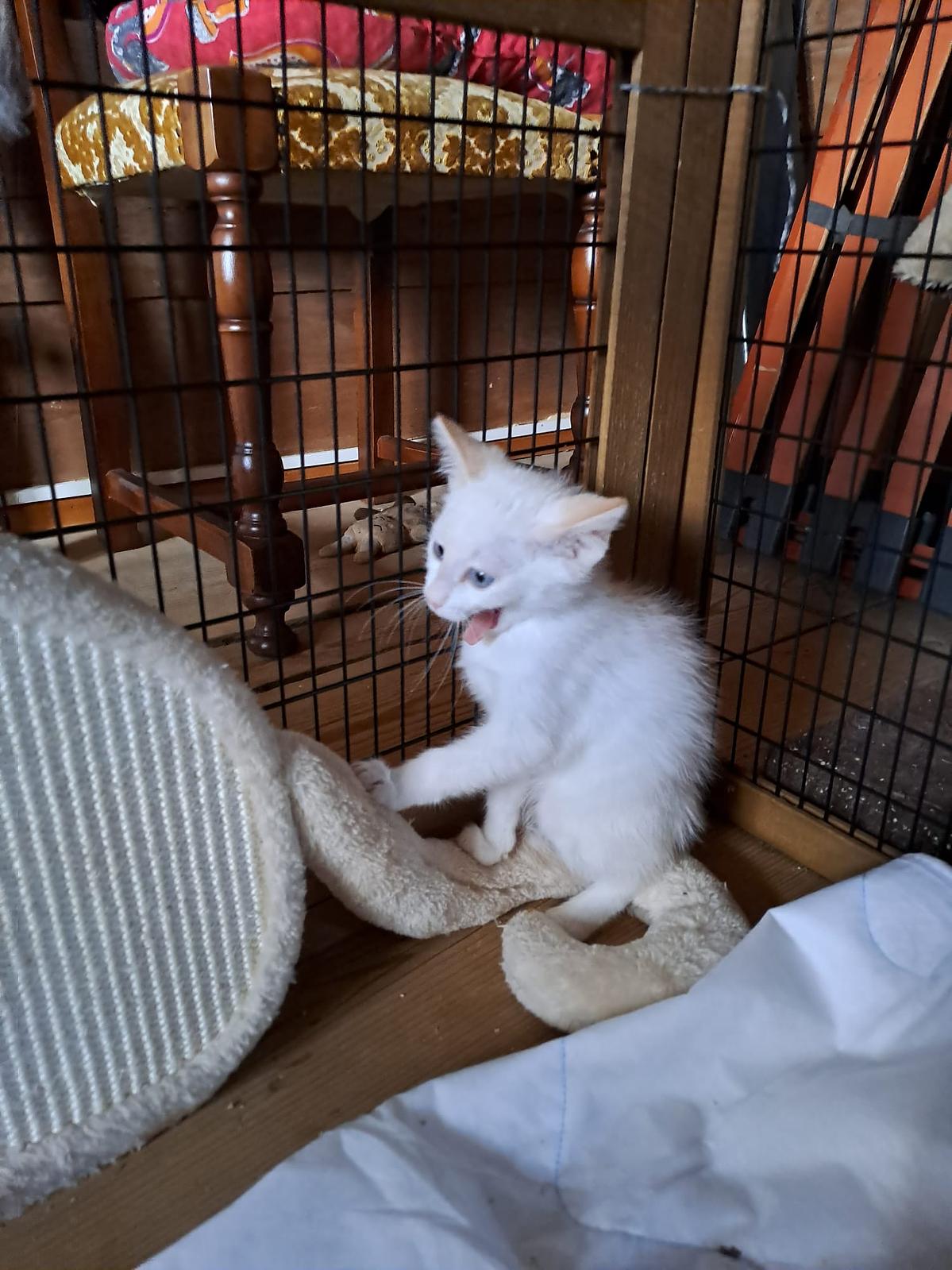 Emon ist sehr zurückhaltend und kuschelt sich gerne an Fee und schläft auch neben ihr. Anfassen nur wenn es dann sein muss. Genießen noch unmöglich. Seine Neugier hält sich noch in Grenzen aber gucken was es zu schnurren gibt da konnte er nicht widerstehen. Fauchen ist nicht sein Ding lieber verstecken oder zu Fee flüchten