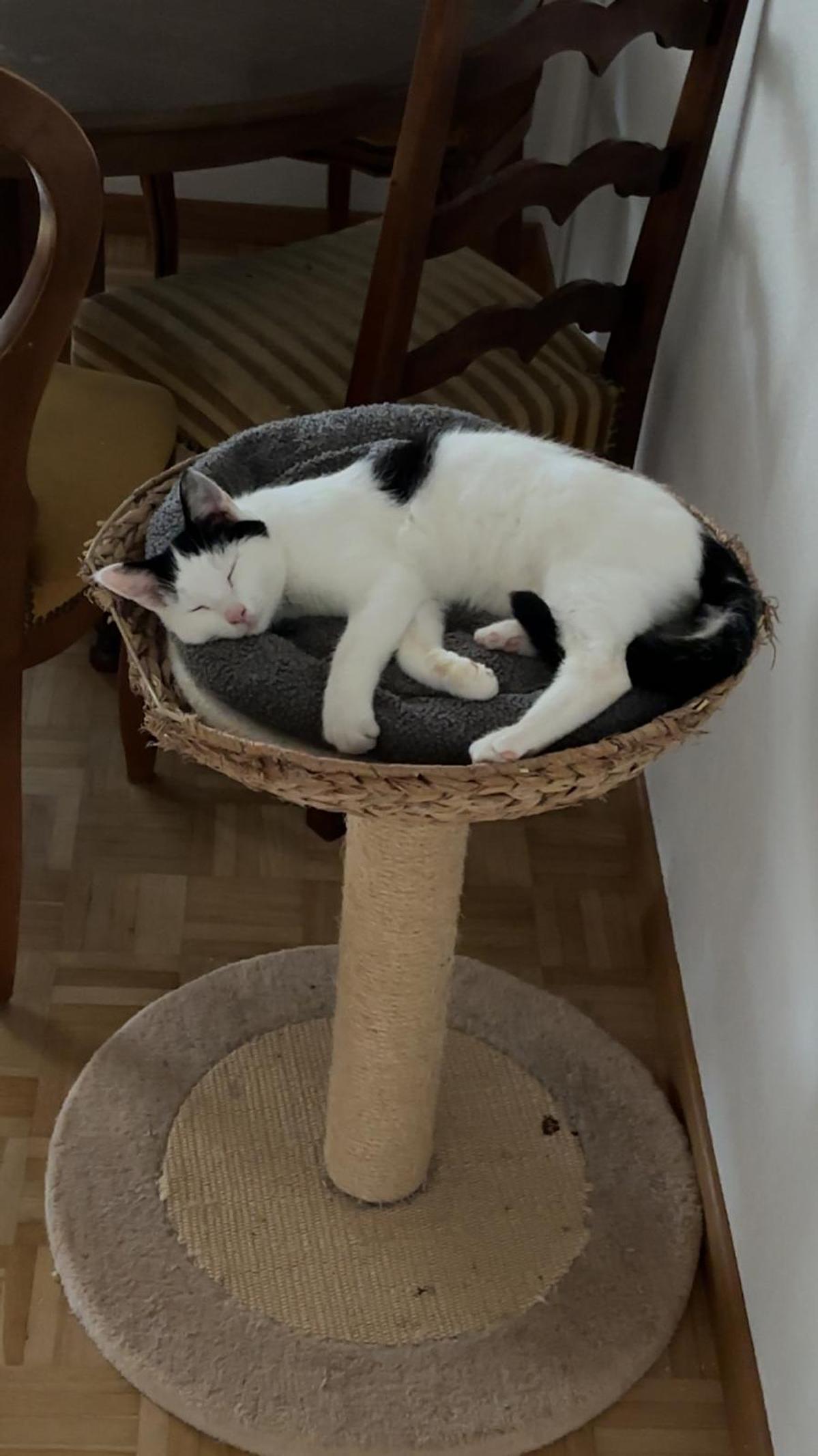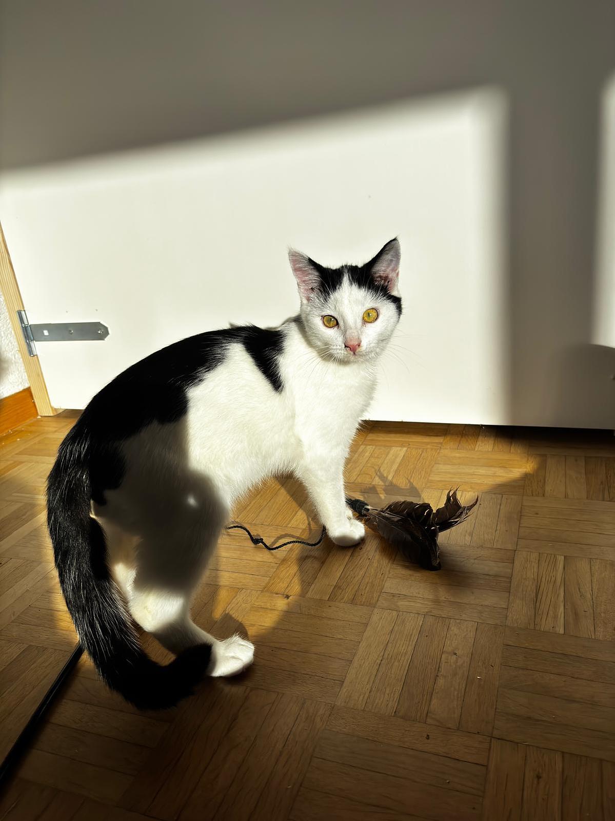 Ezra ist sehr menschenbezogen und weniger eng mit seinen Geschwistern. Für Streicheln und Schlafen auf unseren Beinen ist er immer zu haben. Schnurren kann er wie ein Weltmeister. Er frisst sehr gerne und ist sehr neugierig und möchte am liebsten immer bei uns in der Wohnung sein.