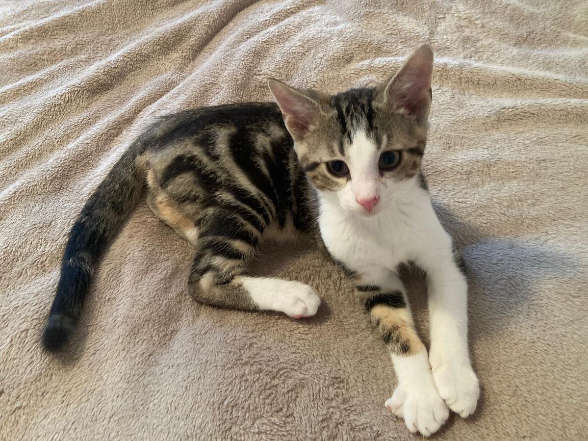 Wir gingen dort vorbei und konnten 5 Kitten in einem desaströsen Zustand übernehmen. Schnupfen und verklebte Augen, mager und voller Parasiten. Wir konnten sie umgehend in die Tierklink bringen, wo sie mehrere Tage stationär aufgepäppelt wurden. Die Katzenmama konnten wir auch mitnehmen und sie pflegt ihre Babys sehr gut. Leider kam für 2 der 5 Kitten jede Hilfe zu spät, sie verstarben nach 3 Tagen in der Klinik. Dank der Medikamentation besserte sich der Zustand der andern 3 Kitten und so konnten sie auf unsere Pflegestelle umsiedeln. Sie benötigen weiterhin Augentropfen und Medis und sie machen gute Fortschritte.