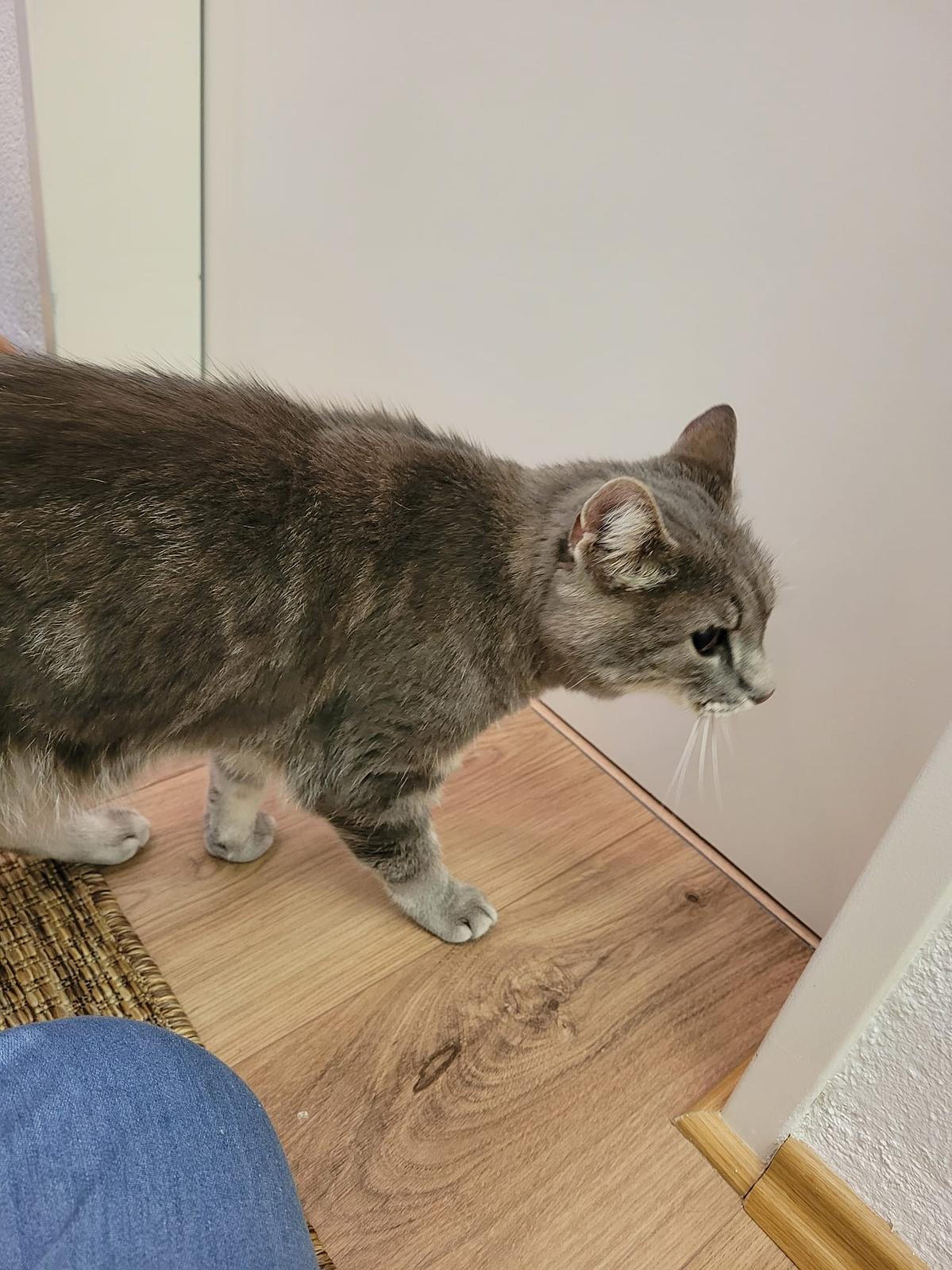 Wir wurden von einem Tierarzt um Hilfe angefragt, wegen einer älteren blinden Katze. Das blinde Büsi hatte die ebenfalls ältere Besitzerin gebissen und diese musste deswegen ins Spital, weil sie eine Blutvergiftung bekam. Sie wollte ihre Katze deshalb einschläfern lassen. Die Schwiegertochter hat sich für die Katze eingesetzt und sie uns zur Vermittlung übergeben.