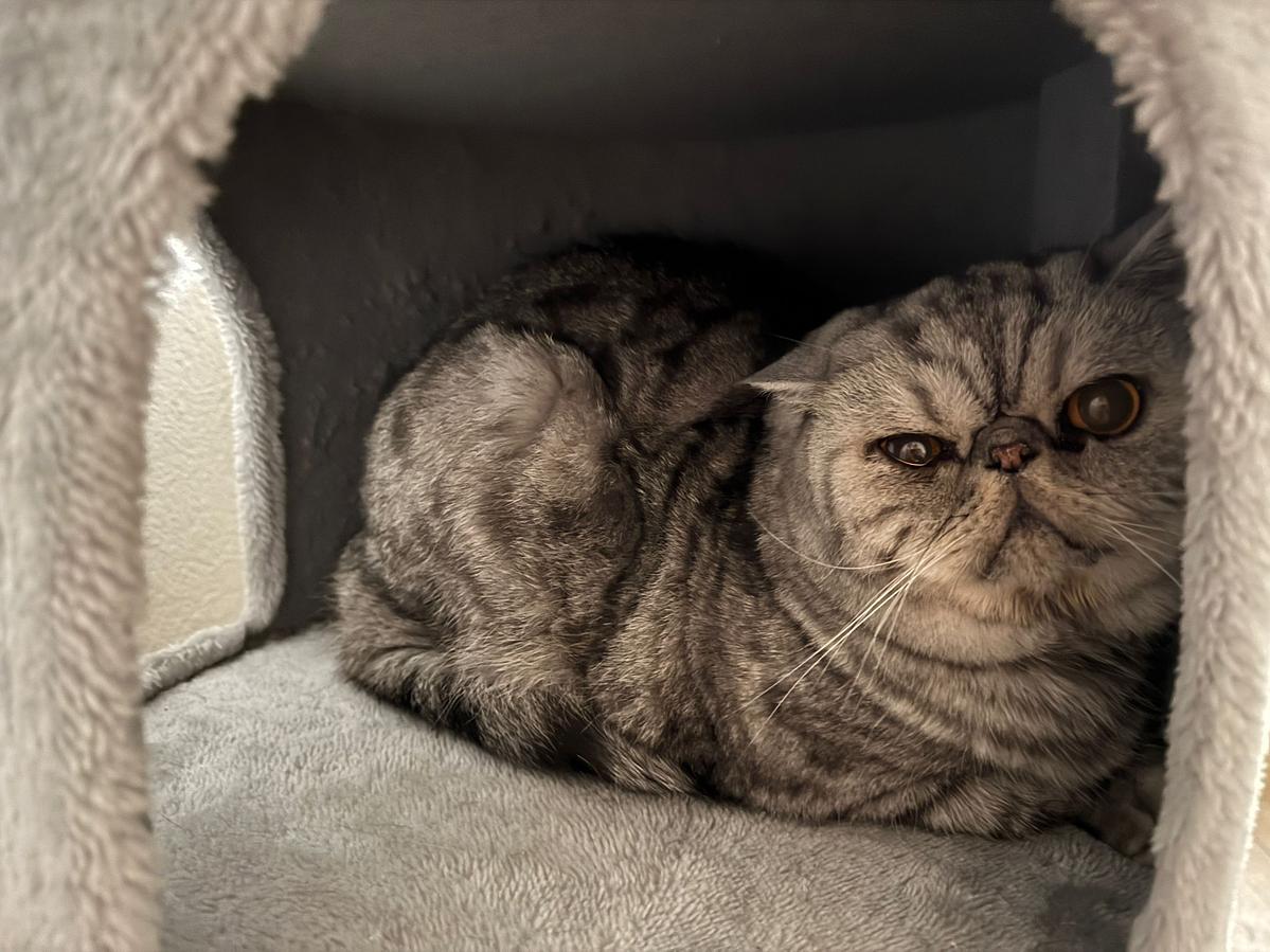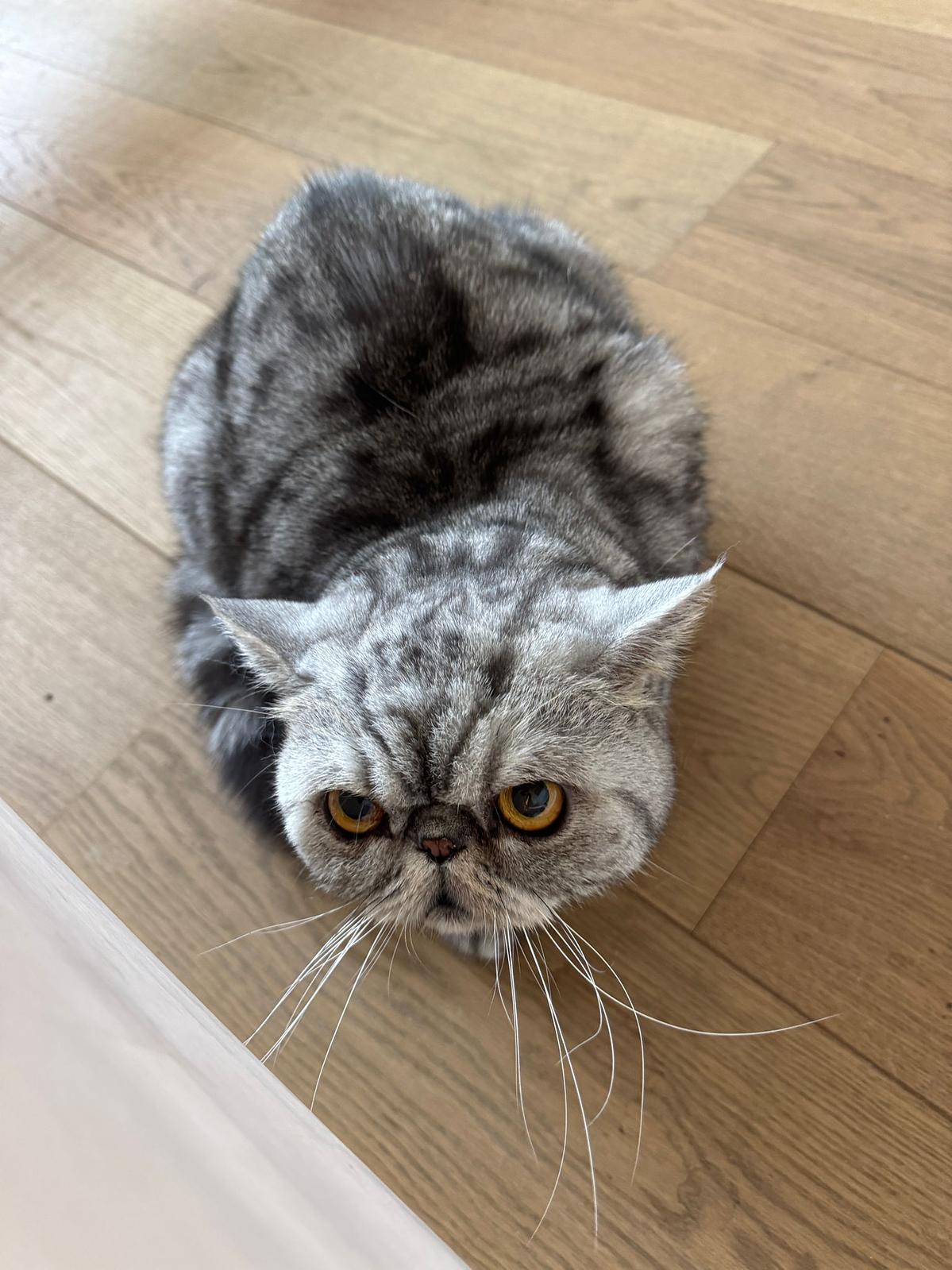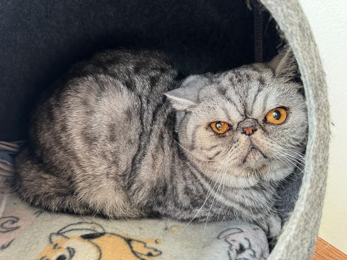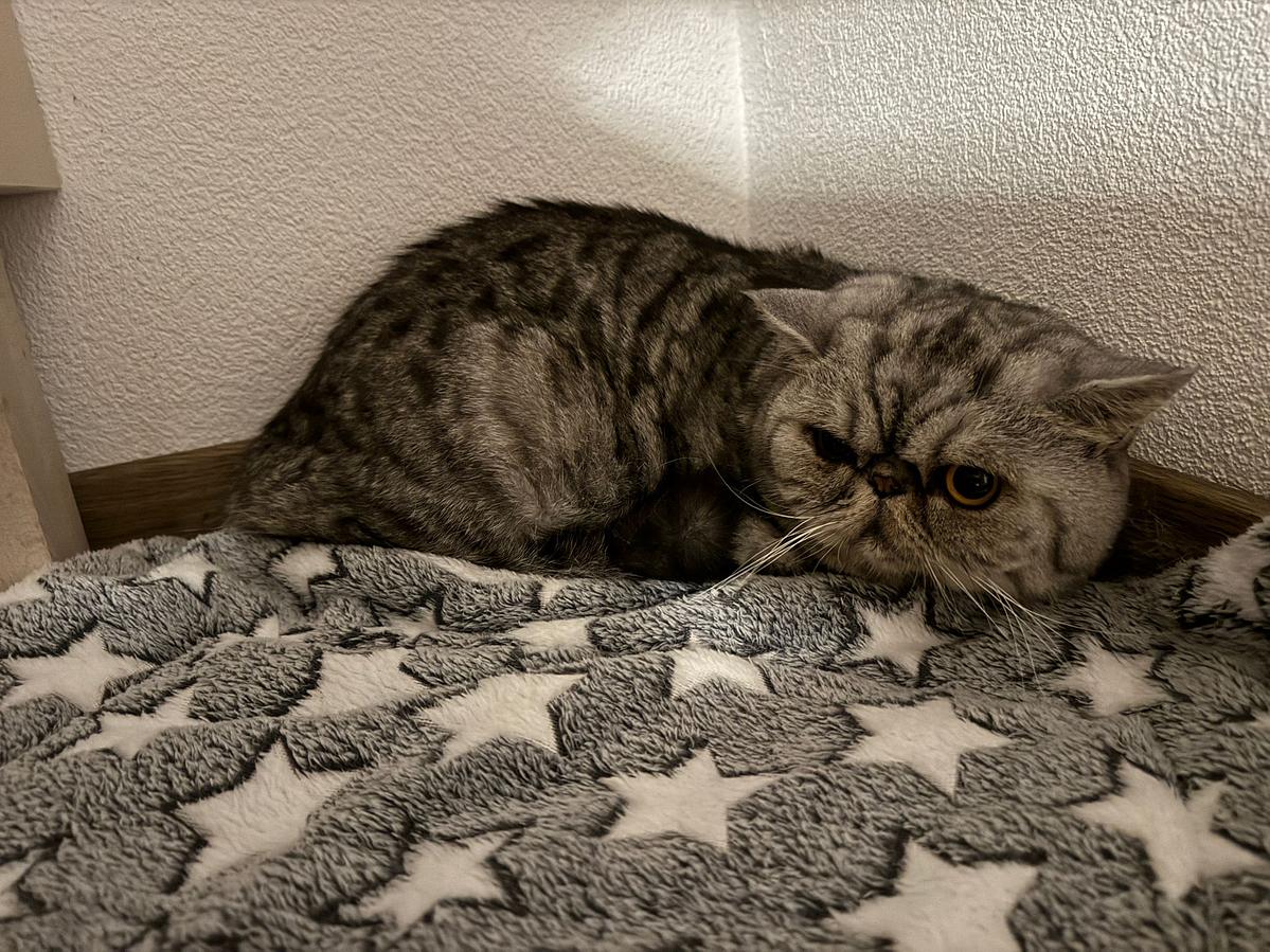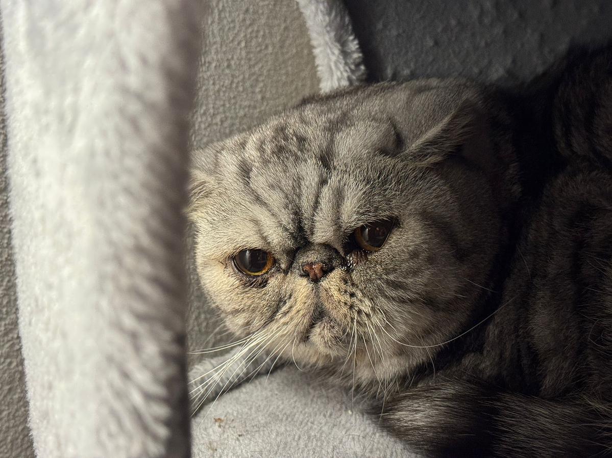 Goliath ist ein lieber, zahmer Exotic-Shorthair-Kater, der zumindest anfangs noch relativ scheu ist und zurückhaltend auf neue Situationen reagiert. In einer ungewohnten Umgebung braucht er etwas Zeit, um sich einzuleben und Vertrauen zu fassen. Zu Beginn zieht er sich deshalb gerne an einen sicheren Ort zurück und beobachtet alles erst einmal in Ruhe.