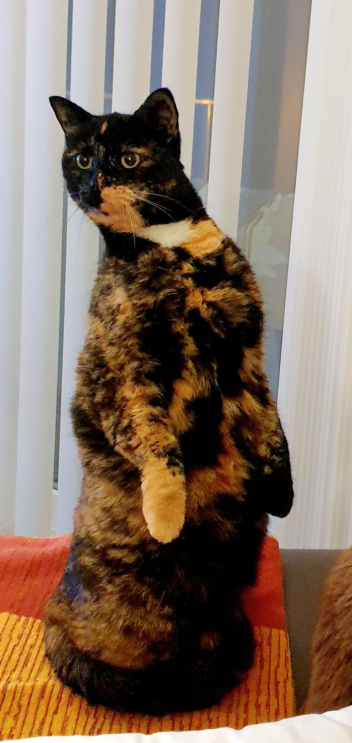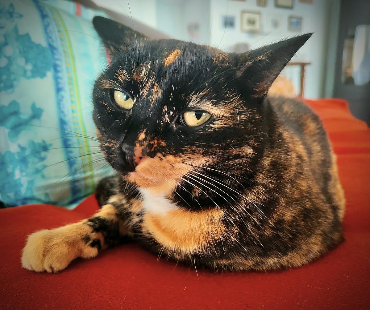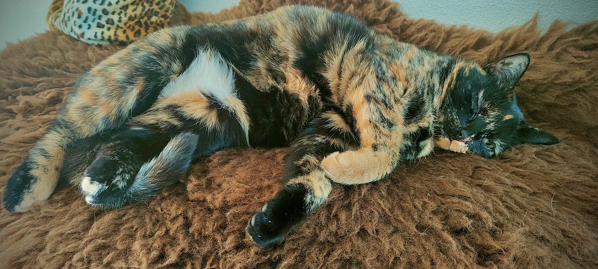 Harly, die hübsche Schildpatt-Katze, ist uns vor mehr als einem Jahr zugelaufen. Der eigentliche Besitzer hat sich nicht mehr um die Katze gekümmert. Abgemagert und «verwurmt» hat sie sich ein neues zu Hause gesucht und dies bei uns gefunden. Anfangs eher skeptisch und scheu hat sie sich mittlerweile mit uns angefreundet und geniesst ihr neues Zuhause sehr. Nun ist sie gesund und fit und besitzt viel Lebensfreude. Sie ist neugierig, witzig, spielt gerne und liebt es wenn wir mit ihr draussen im Garten sind. Ihre Streicheleinheiten holt sie sich drinnen wie draussen regelmässig ab.