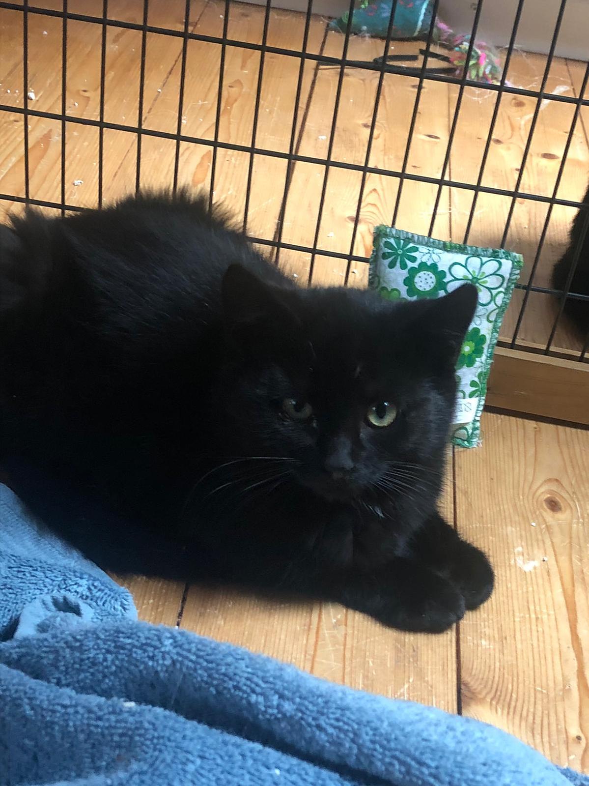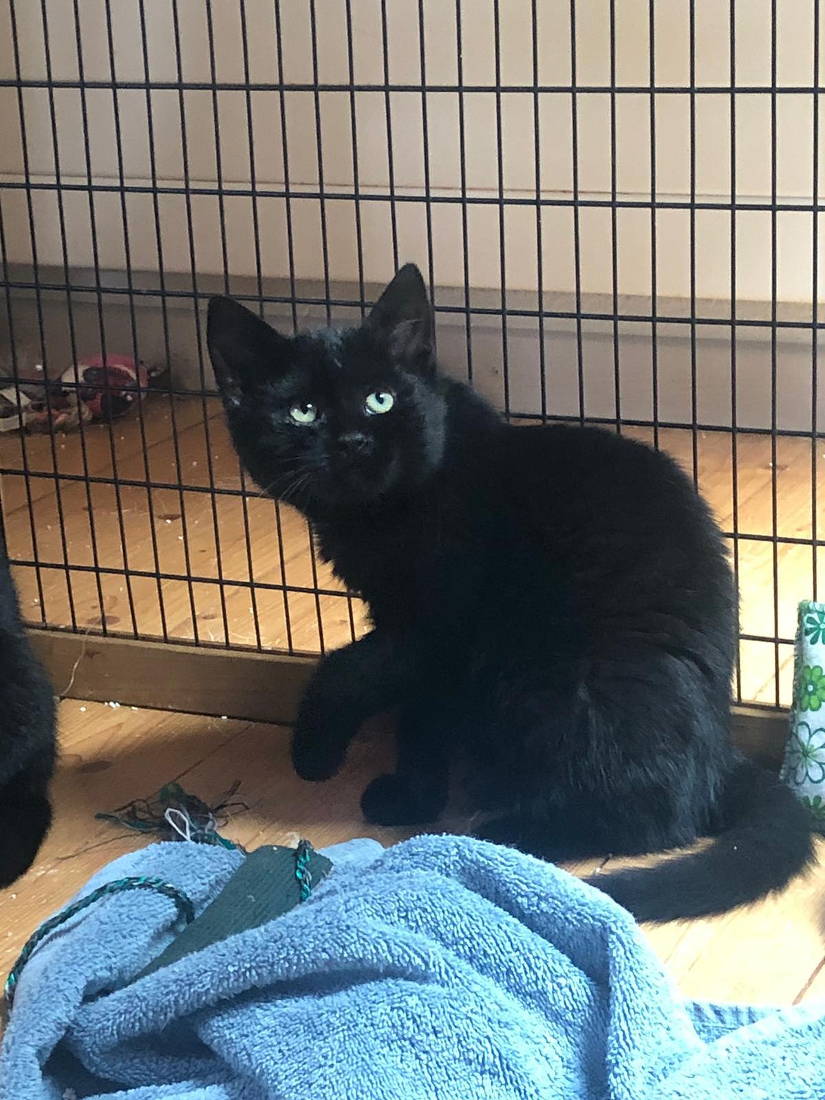 Harry, der kleine schwarze Kater, ist sehr mutig und neugierig. Er scheint Ginny sehr zu mögen, denn er ist oft da zu finden, wo Ginny ist. Harry lässt sich problemlos nehmen und streicheln, was er inzwischen sogar ganz toll findet. Wie alle jungen Katzen, ist auch er verspielt und voller Tatendrang. Es wäre toll, wenn Harry und Ginny zusammen bleiben könnten.