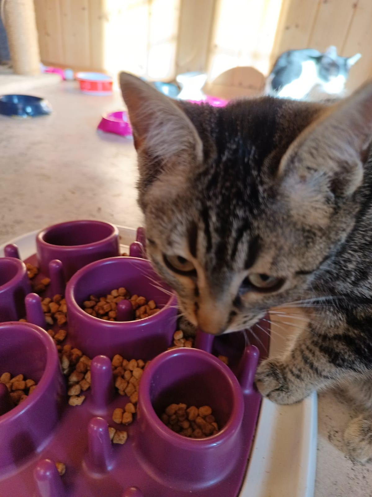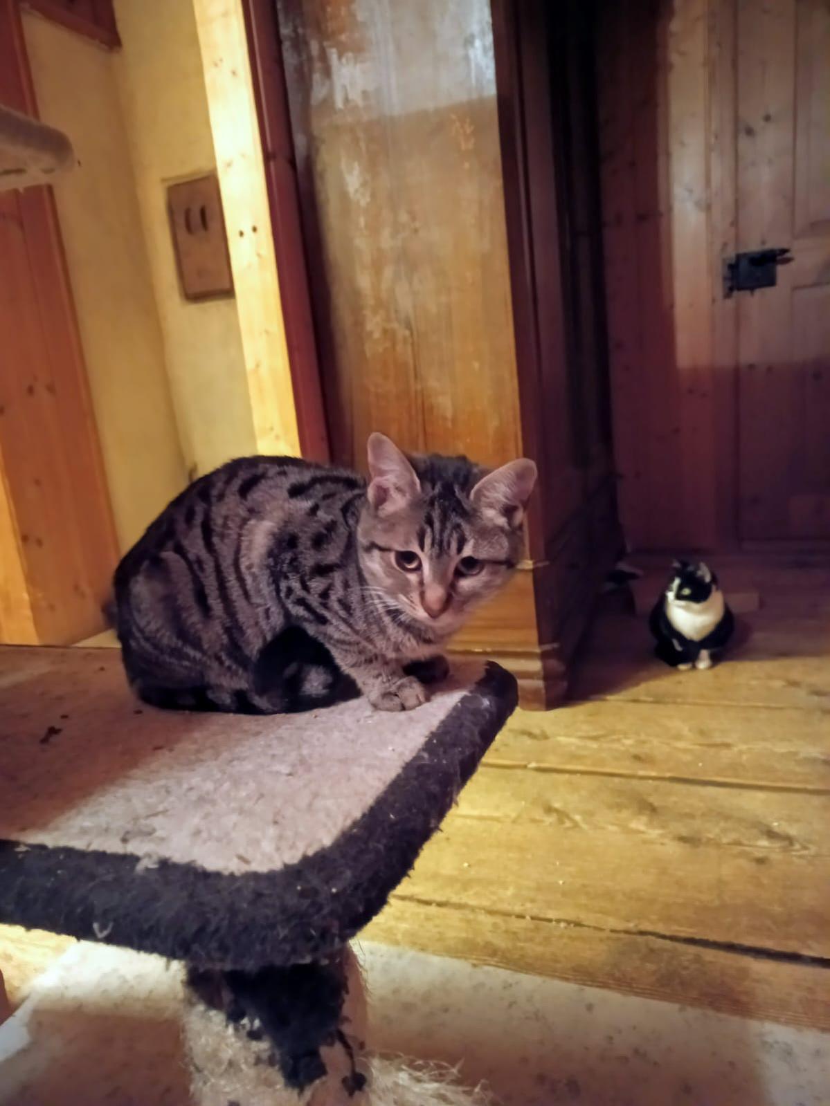 Sie ist eine sehr verspielte Katze aber lässt sich Zeit und klärt erst mal ab, ob es nicht gefährlich ist
