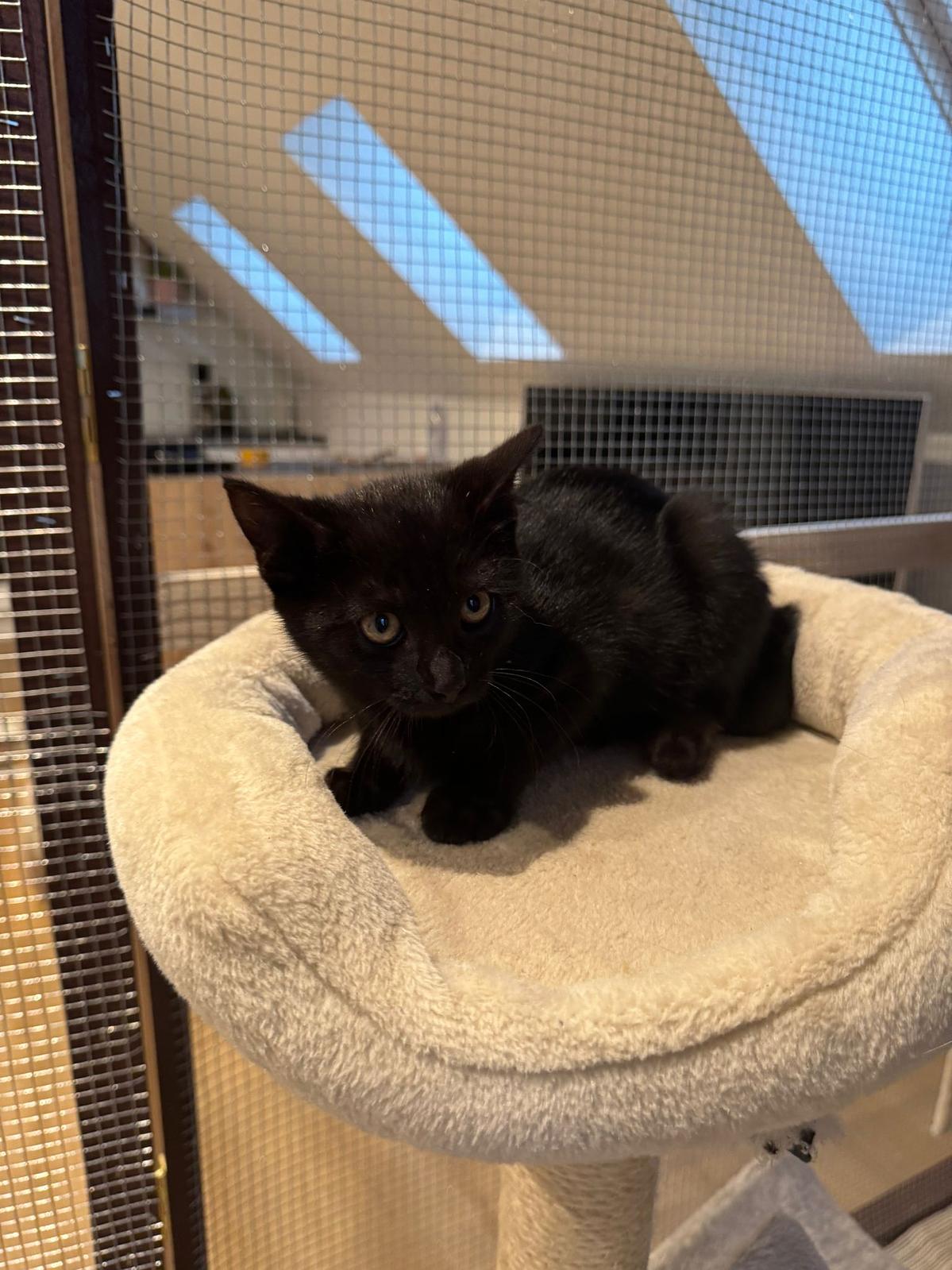 Wir wurden von einem Bauernhof um Hilfe angefragt. Cloe war mit ihren Kitten immer wieder unterwegs und der Bauernhof liegt an einer gefährlichen 80-ziger Strecke. Dort wurde schon einige Katzen überfahren. So durften wir die ganze Familie bei uns zur Vermittlung aufnehmen.