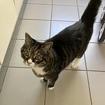 Er lässt sich gerne kraulen und isst sehr gerne. Das kann er auch laut miauend einfordern.