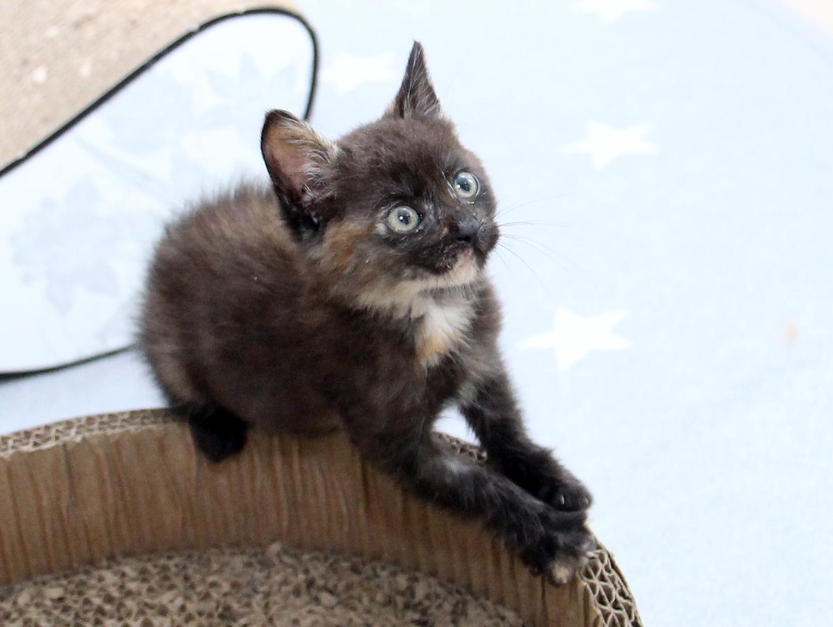Lolita ist eine zutrauliche kleine Kätzin. Sie kann bereits gut Schnurren und spielt sehr gerne mit Aaron.