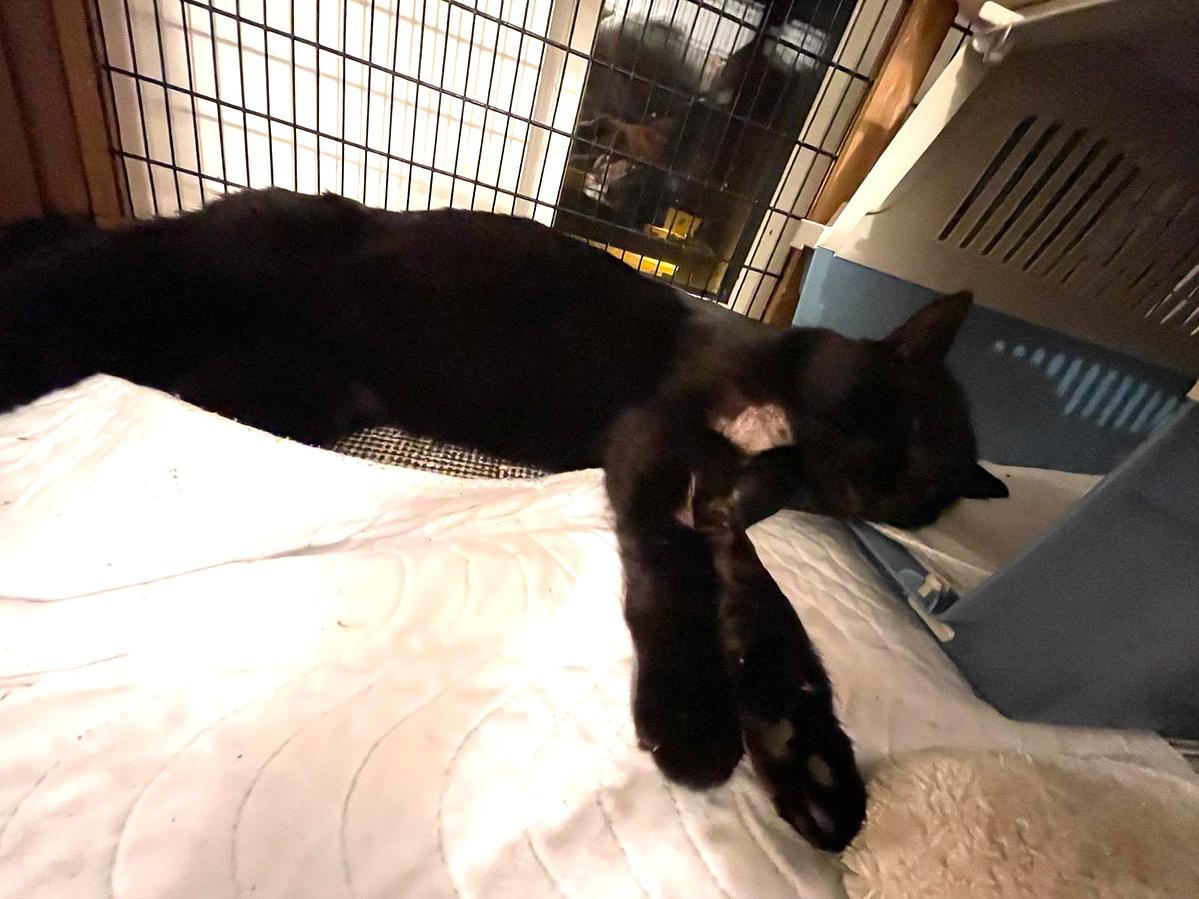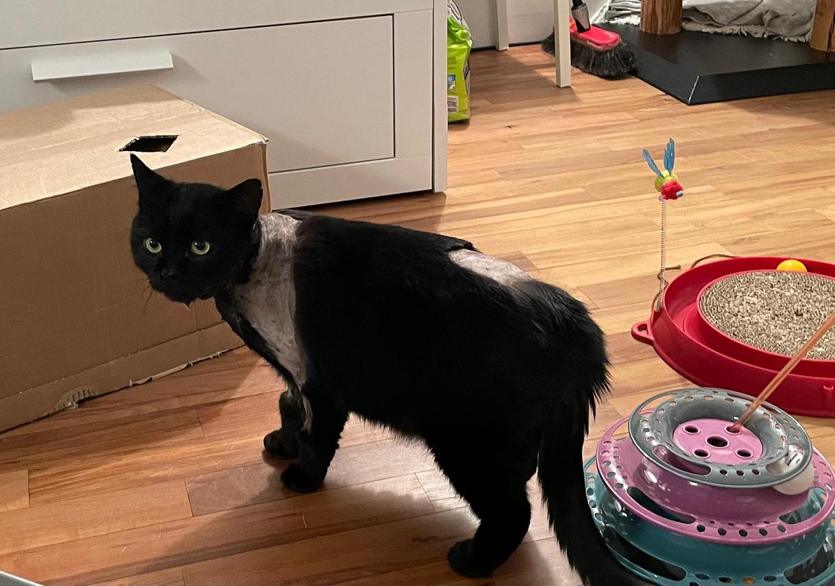 Wir haben ihn eingefangen und in die Tierklinik gebracht. In zwei Operation wurde die riesige Wunde verschlossen.