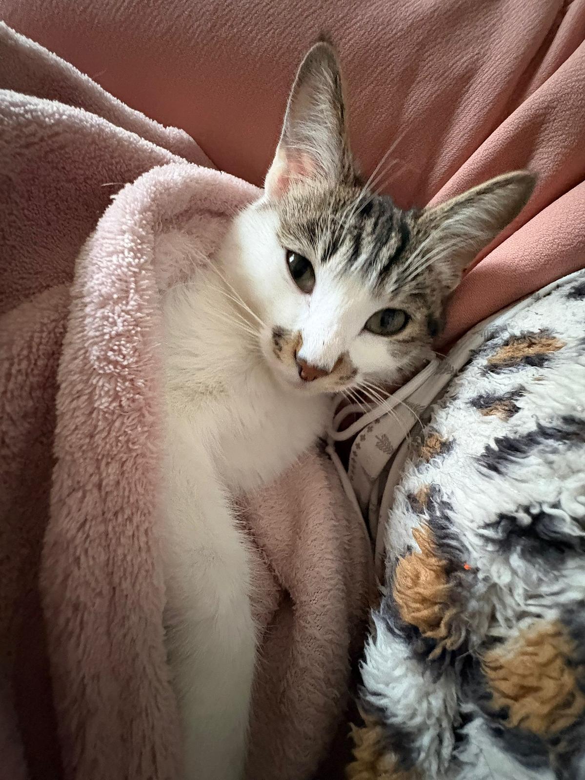 Merry ist eine zutrauliche und sehr verschmuste Kätzin, welche die Nähe von Menschen sichtbar geniesst. Neugierig erkundet sie ihre Umgebung und ist immer interessiert an neuen Eindrücken, ohne dabei aufdringlich zu sein. Als ruhiges und pflegeleichtes Weibchen passt sie sich leicht an und fühlt sich schnell wohl. Mit ihrem freundlichen, fröhlichen Wesen bringt Merry viel Wärme und Freude in den Alltag.