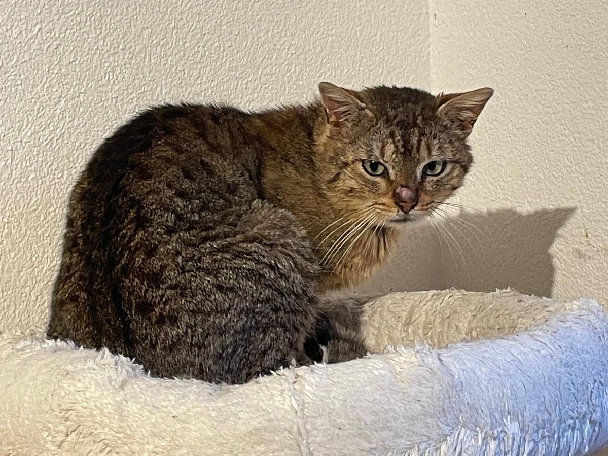 Micky wurde von unseren Schrebergarten-Frauen eingefangen, nachdem er an einer Futterstelle aufgetaucht war. Seit etwa einem Monat hält er sich dort auf – wir wissen leider nicht, ob er ausgesetzt wurde.