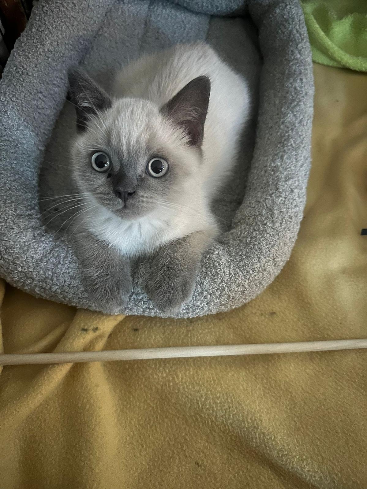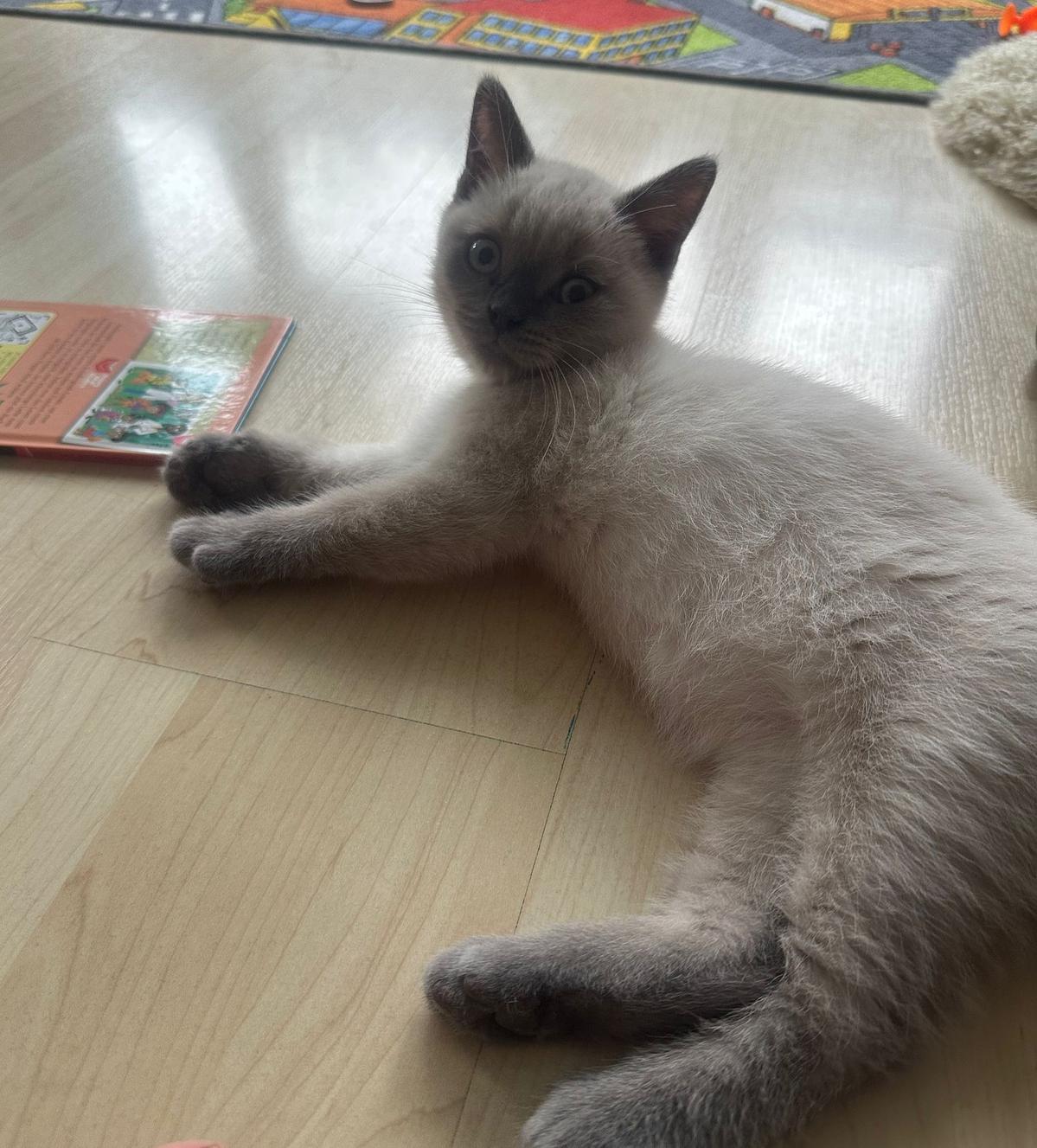 So kam er zu uns wo er sich als einfach tolles, aufgeschlossenes Kitten zeigte das einfach nur geliebt werden will.