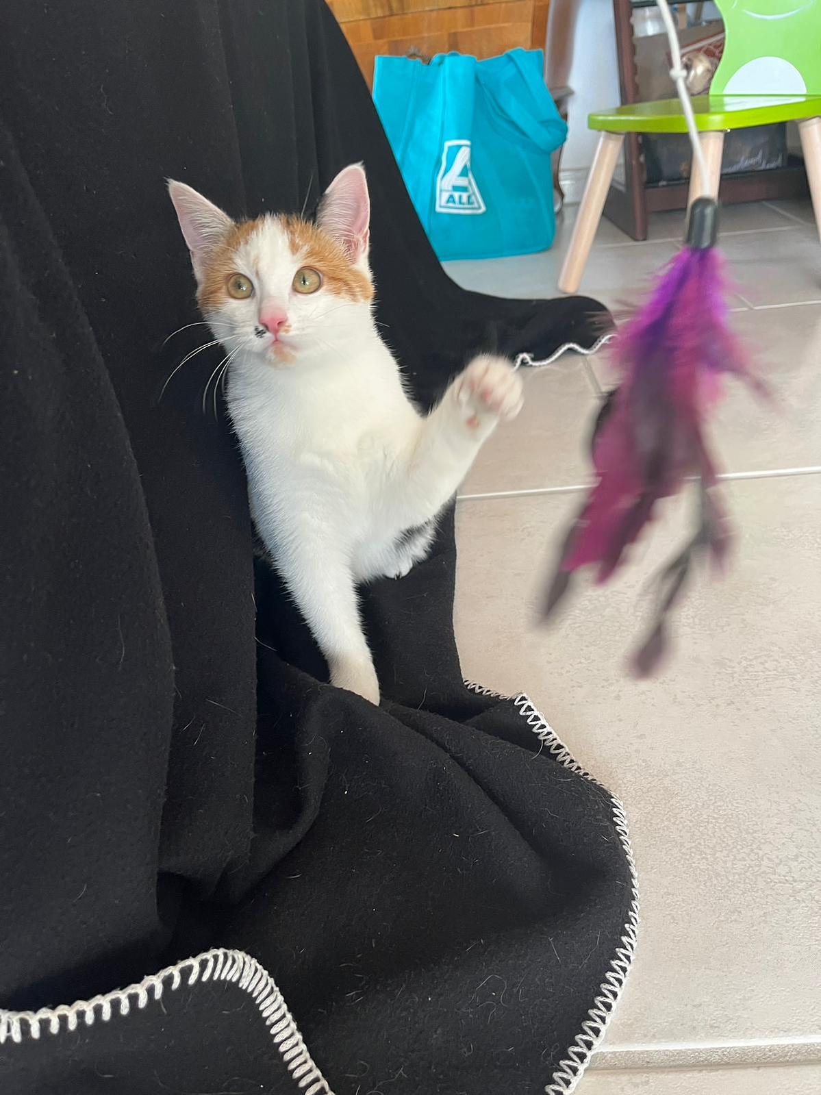 Sie ist neugierig, lebhaft und bringt mit ihrer verspielten Art immer gute Laune in die Runde. Oft ist sie es, die die anderen Katzen zum Mitspielen animiert. Mit Minza wird es nie langweilig. Streicheln lässt sie sich schon richtig gern und schnurrt dabei zufrieden vor sich hin. Hochgehoben zu werden ist für sie noch etwas ungewohnt, aber sie hat schon viel Vertrauen gefasst und wird sicher bald auch das Geniessen.