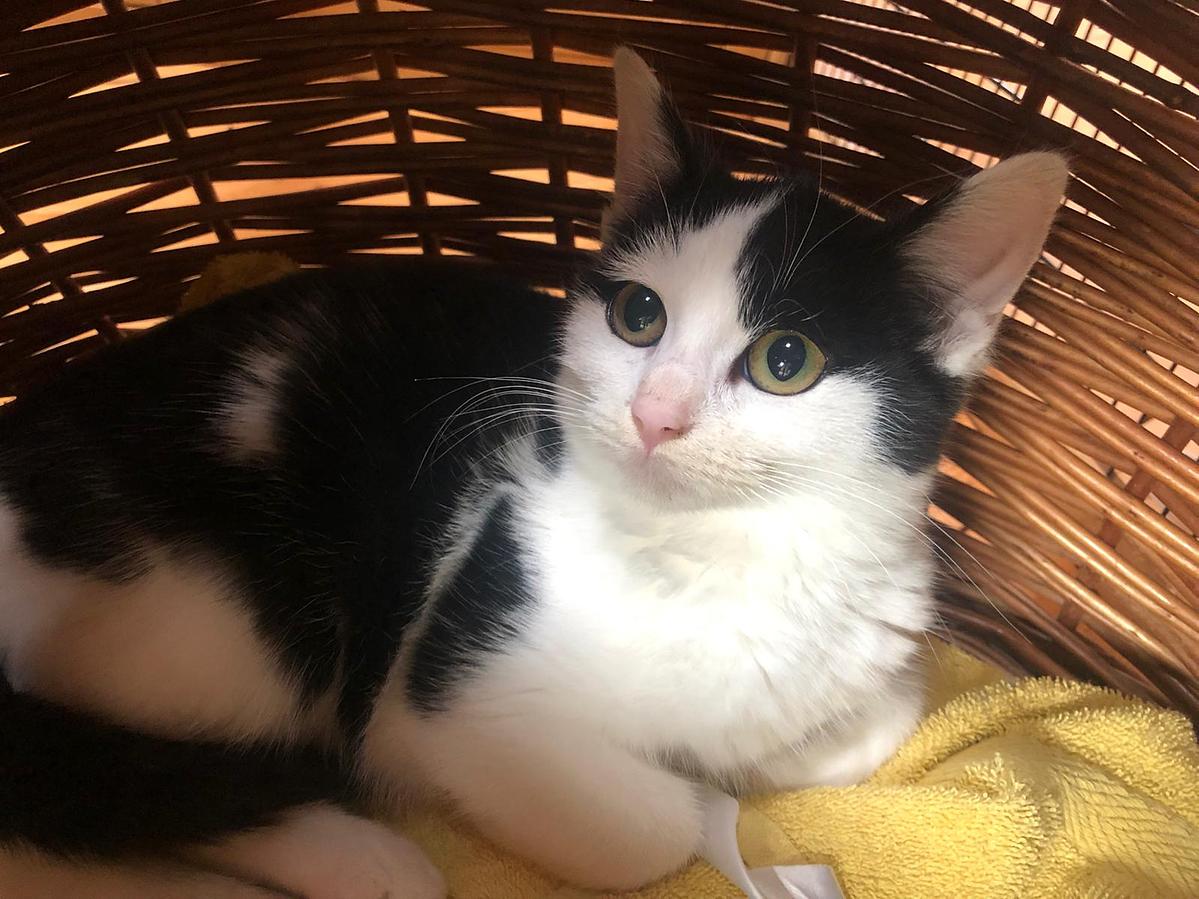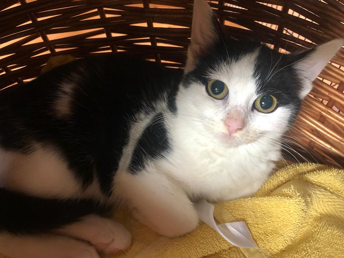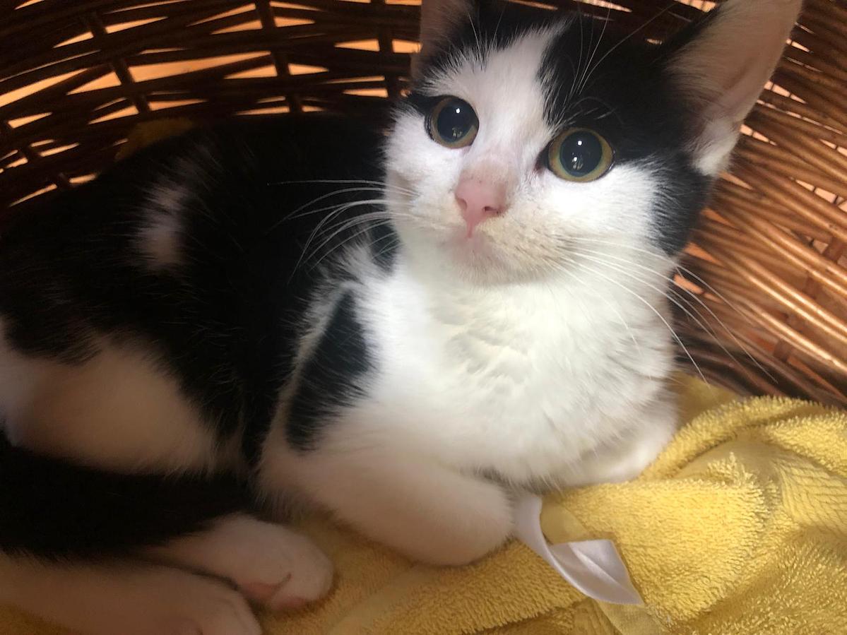 Molly, die kleine schwarz-weisse Katze, ist neugierig und verspielt. Für Futter kommt sie bereits aus ihrem Versteck und lässt sich streicheln. Was sie aber noch nicht so mag. Lieber spielen und herumrennen. Molly wird am liebsten mit eines ihrer Gruppengspänli oder zu einem anderen Kitten vermittelt.