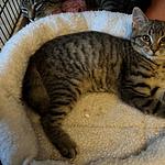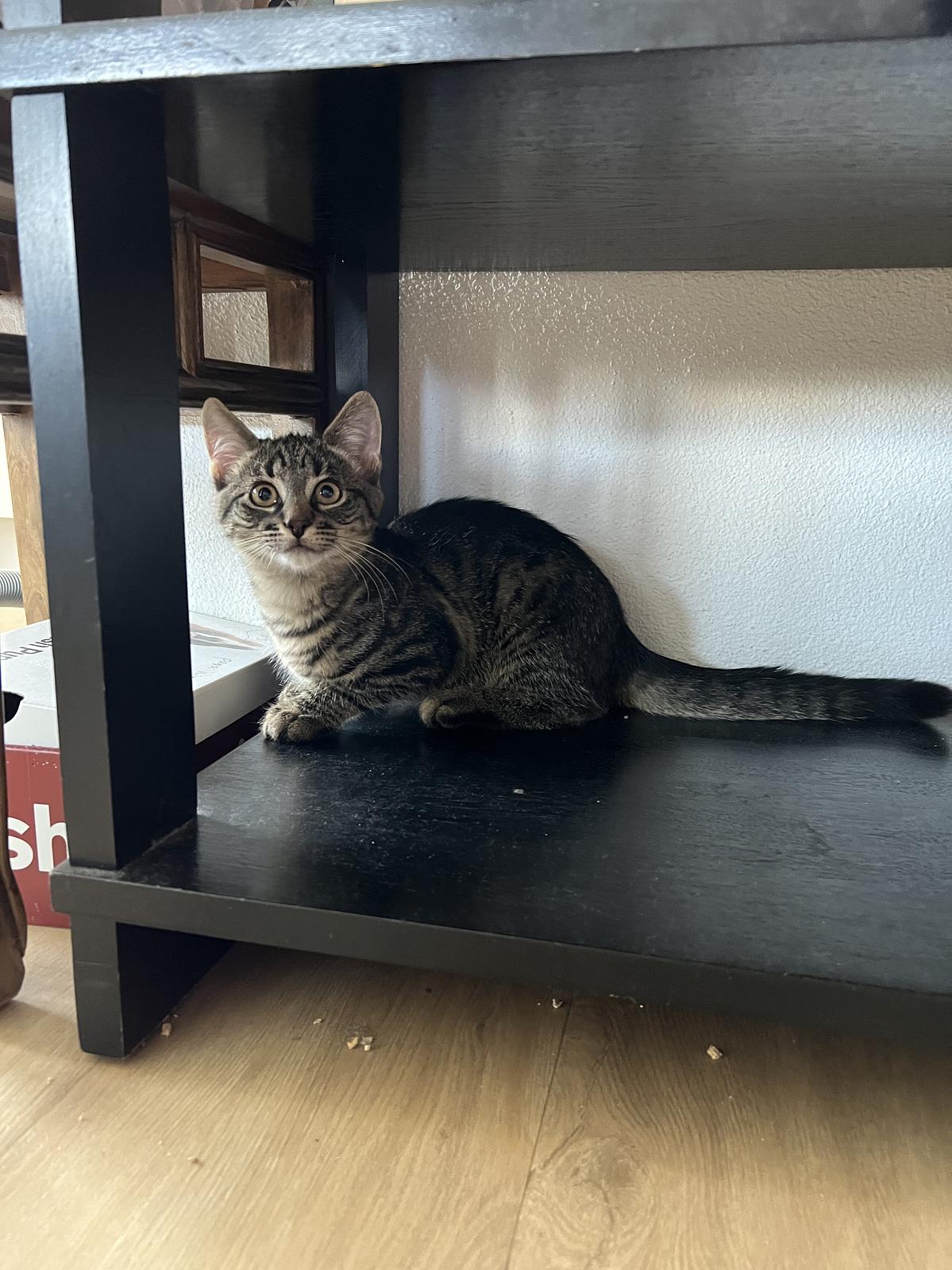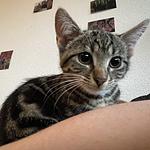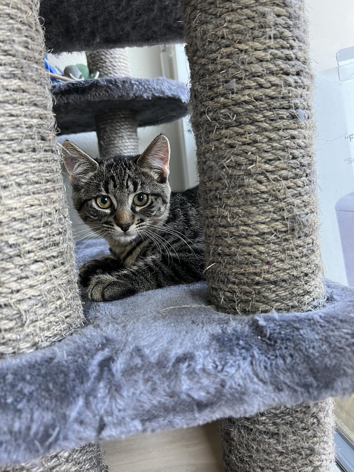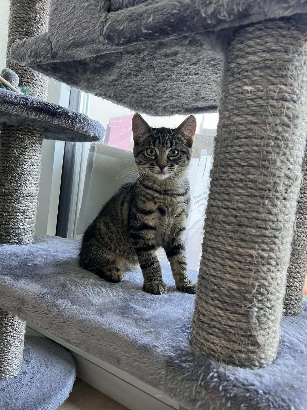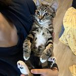 Morpheus ist ein wenig ruhiger als seine Geschwister. Er ist Menschen gegenüber noch skeptisch, aber lässt sich gut auf den Arm nehmen und streicheln. Auch er ist sehr verspielt und neugierig.