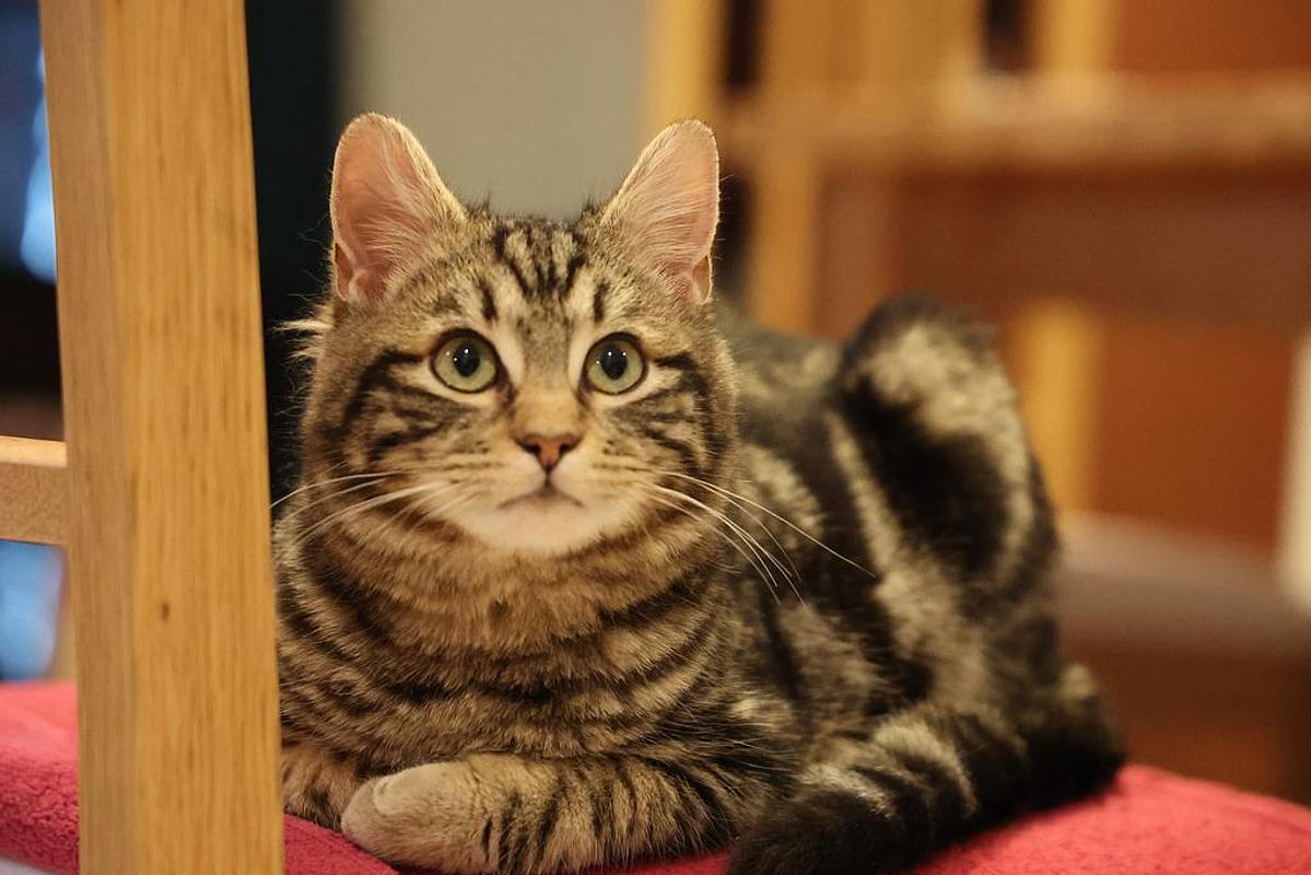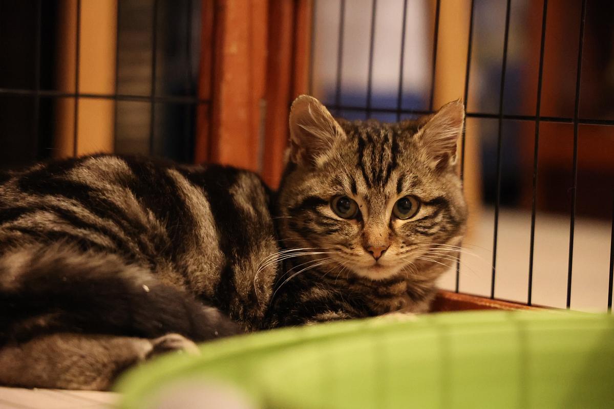 Nagesh hat in der Pflegestelle grosse Fortschritte gemacht. Zu Beginn hat er sich in die Ecke gedrückt und seinem Missmut mit Fauchen Ausdruck gegeben. Mit viel Geduld und Einzelbetreuung konnte er aber aus seiner Schale gelockt werden. Der Kleine ist manchmal (besonders bei Fremden) noch skeptisch, aber er kann auch seine verschnurrte Seite zeigen.