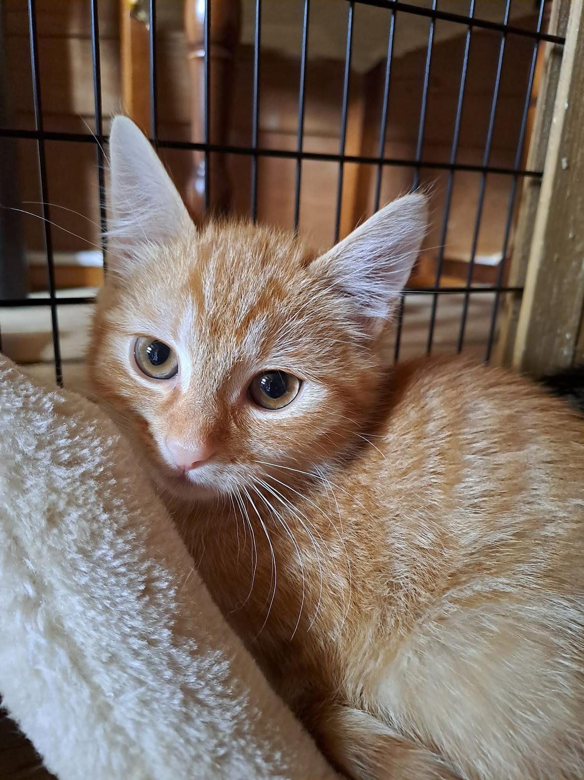 Namir ist der mutigste von allen und hat geschnurrt beim Köpfchenstreicheln bis er gemerkt hat dass es eine Hand gewesen ist dann hat er kurz gefaucht. Er ist sehr neugierig und aufgeweckt aber dennoch vorsichtig. Ist ja normal wenn man Menschen nicht kennt