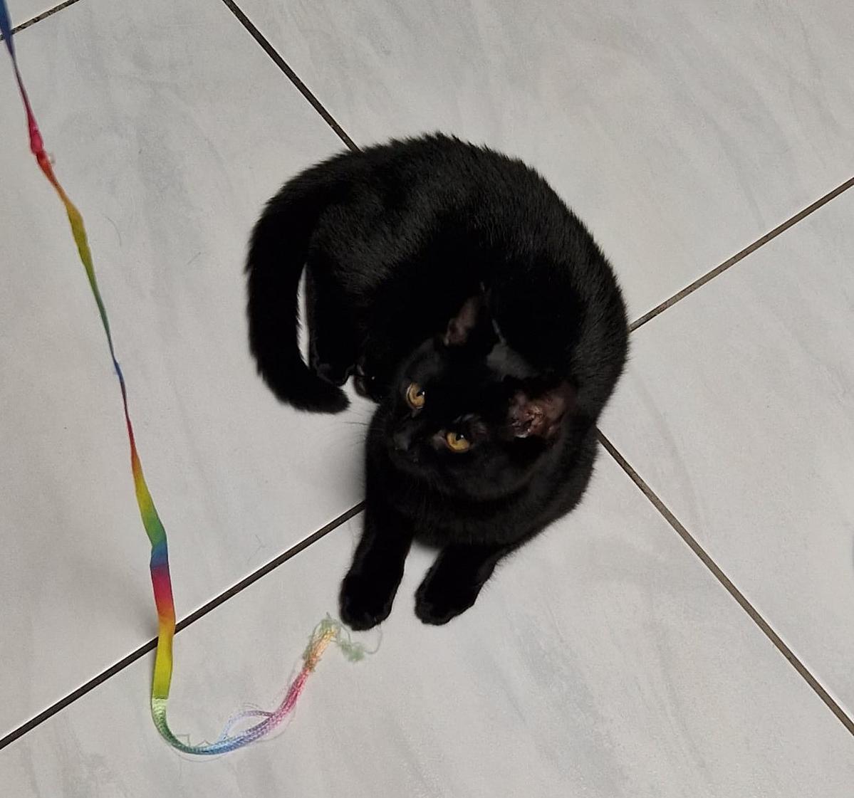 Hat seine plätze gefunden die er am liebsten mag, wenn er vom spielen eine Pause benötigt. Er ist eine richtig tolle, liebevolle Katze.