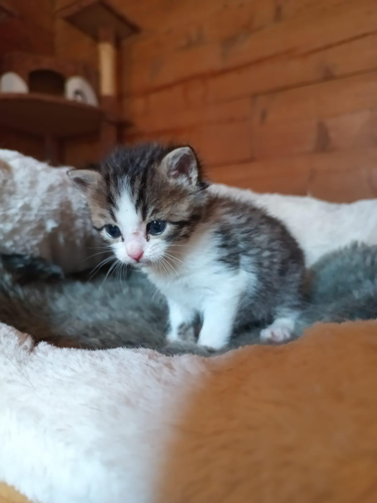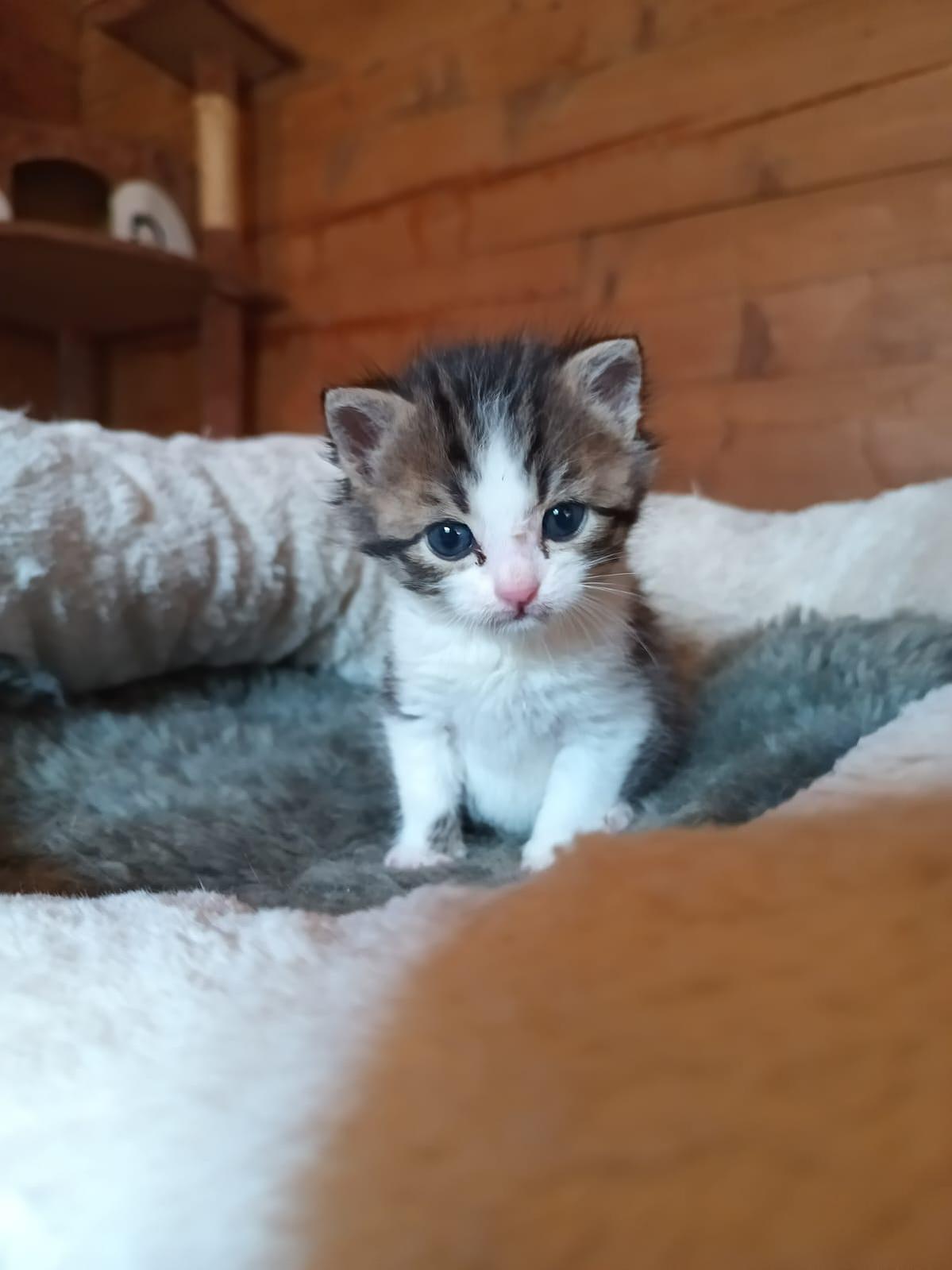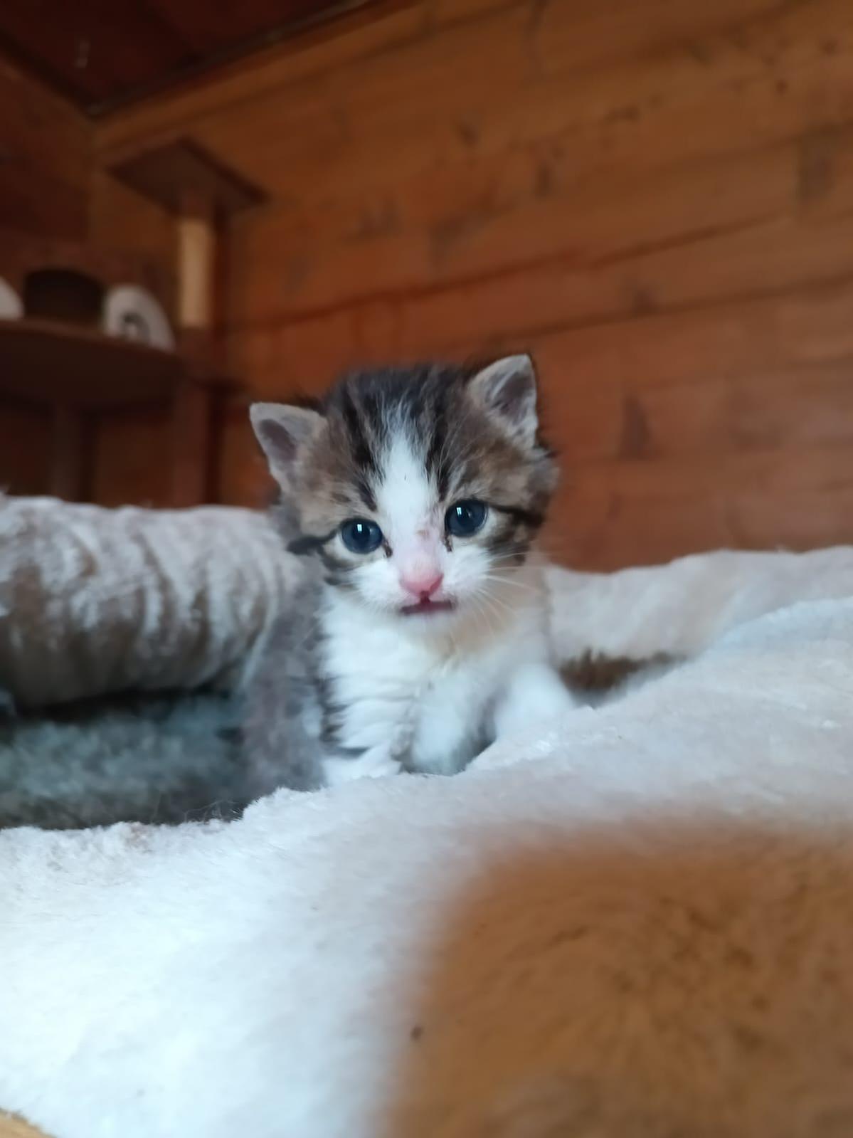 Wir wurden von einem Bauernhof um Hilfe angefragt, leider hatte seine Kätzin ihre 4 Kitten verstossen diese waren erst 2 Wochen alt und mussten unbedingt geschöppelt werden. Da der Bauer zu wenig Zeit hatte, um die Kitten mit dem Shoppen aufzuziehen, hat er uns um Hilfe angefragt. Die Kätzin wurde jetzt kastriert und darf dortbleiben. Die vier Kitten wurden uns zur Aufzucht und Vermittlung übergeben.