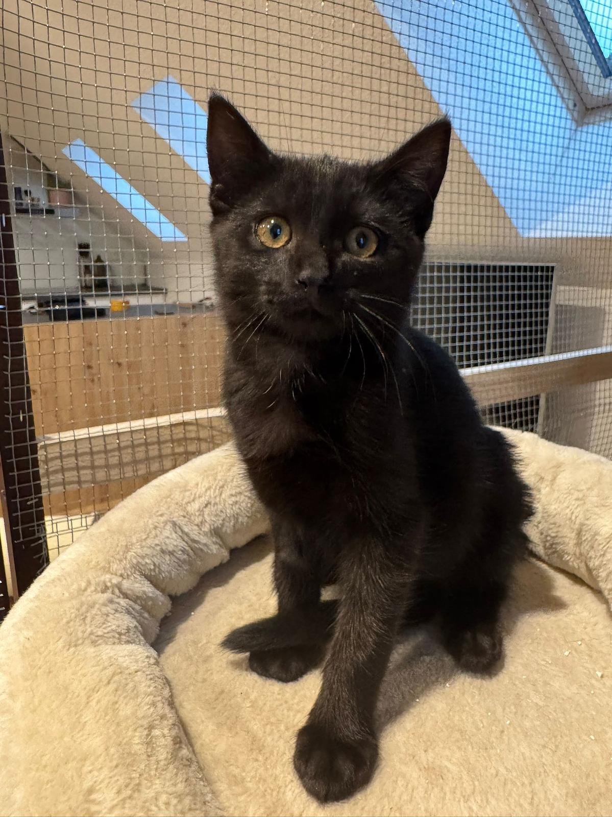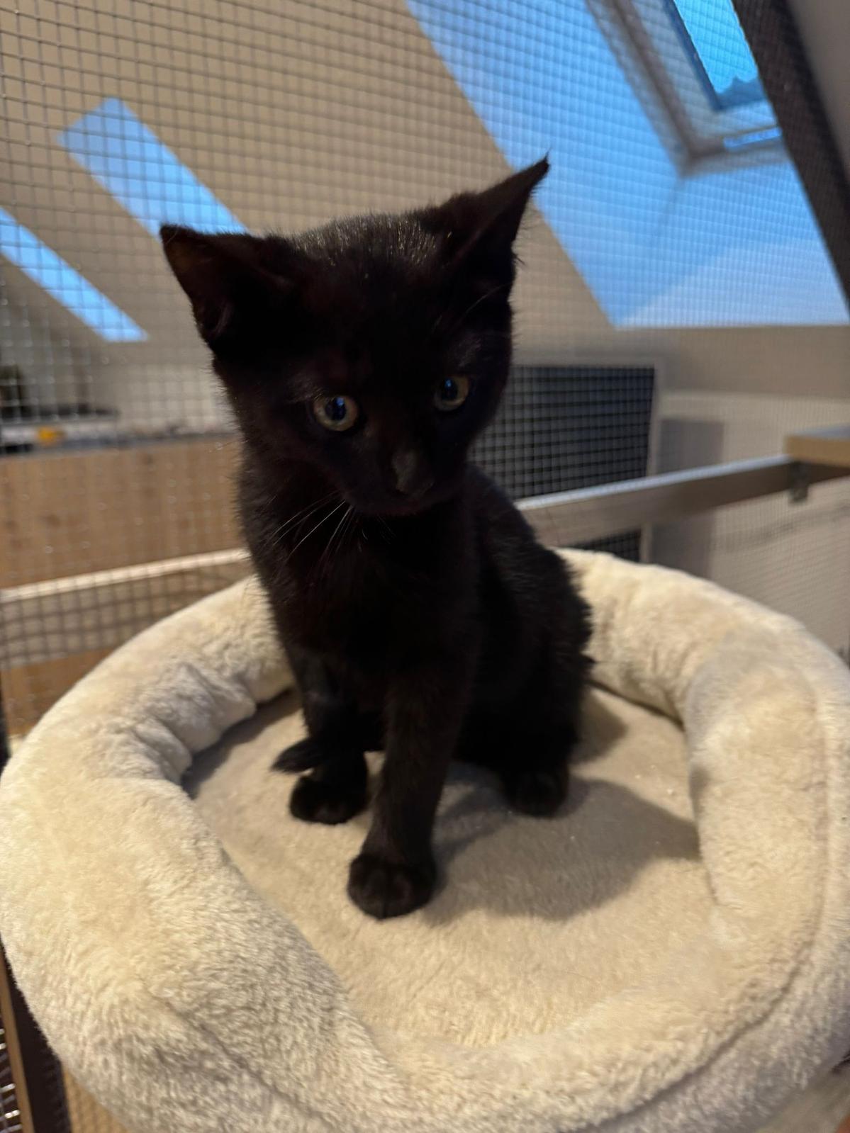 Wir wurden von einem Bauernhof um Hilfe angefragt. Cloe war mit ihren Kitten immer wieder unterwegs und der Bauernhof liegt an einer gefährlichen 80-ziger Strecke. Dort wurde schon einige Katzen überfahren. So durften wir die ganze Familie bei uns zur Vermittlung aufnehmen.