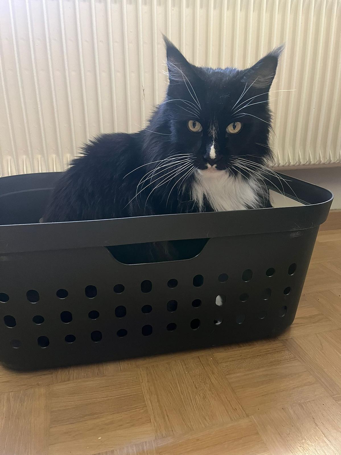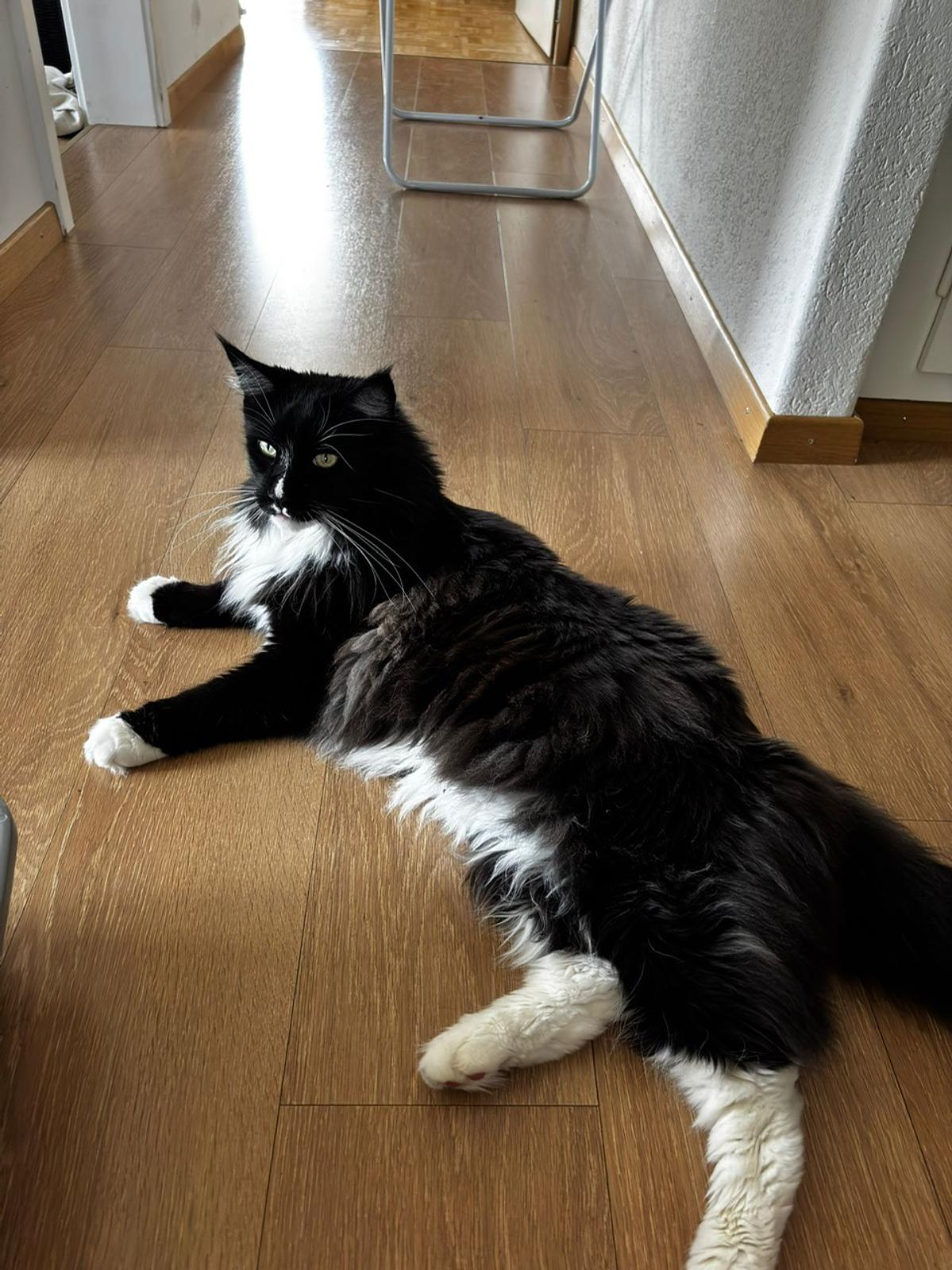 Odin ist ein grosser Maine Coon Kater. Er ist eine freundliche und neugierige Katze und weiss genau, was er möchte. Streicheleinheiten mag er sehr, aber nur am Kopf und Rücken. Geschlossene Türen sind nicht erwünscht, er miaut, bis diese wieder geöffnet werden. Insgesamt ist er sehr verbal und fordert so Aufmerksamkeit ein. Er spielt auch gerne und löst Intelligenzspielzeuge ohne Probleme.