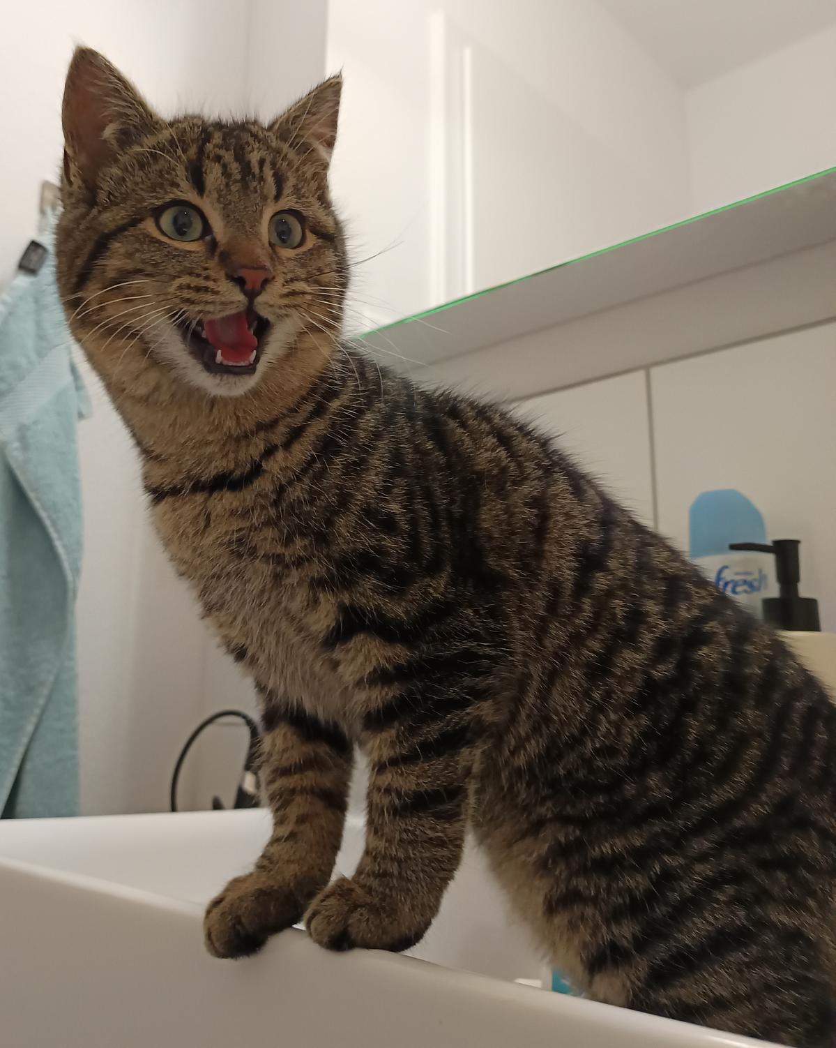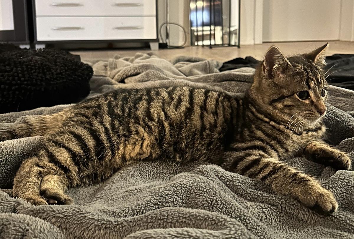 Orion ist einzige Junge der Gruppe nimmt seine Aufgabe als grosser Bruder sehr ernst und ist bei Miauen seiner Schwestern immer schnell da und schaut genau, was wir mit ihnen machen. Er ist sehr neugierig und hat die Wohnung genau inspiziert. Beim Kuscheln ist er noch etwas zurückhaltender. Er ist sehr mutig unterwegs und hat schnell neue Verstecke entdeckt.