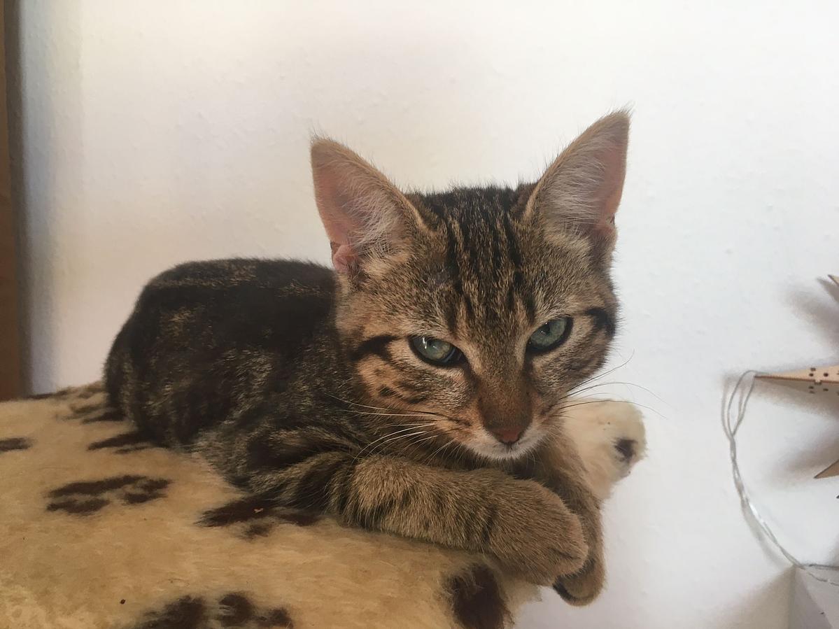 Wunderschönes rötliches Fell, getigert und ein Gesicht zum Verlieben ähnelt er einer Bengalkatze. Unser Phynix ist ebenfalls abenteuerlustig, verspielt - aber mehr als das, trägt er sein Herz sprichwörtlich auf der Zunge und zeigt seine Zuneigung durch Küsschen.