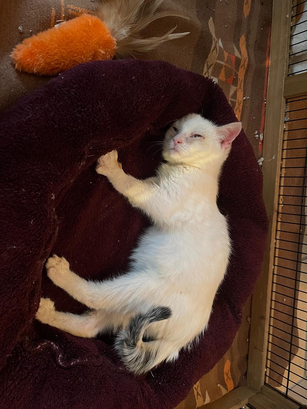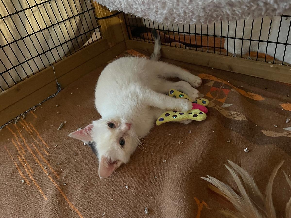 Wir wurden von einem Partner Verein um Hilfe angefragt, ob wir 4 Kitten aufnehmen könnten. Sie waren schon längere Zeit bei einem Bauernhof dran die Bauersleute zu überzeugen, die Katzen auf dem Hof kastrieren zu lassen. Der Bauer wollte sich nicht helfen lassen. Jetzt ist der Bauer verstorben und die Bauersfrau hat die Hilfe angenommen. Sie hat die ersten 2 Kitten bereits von Hand eingefangen und sich dann sofort gemeldet.