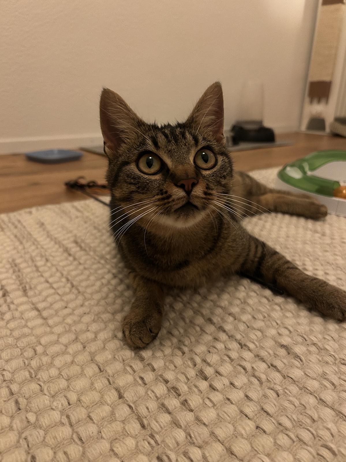 Popito ist eine offene und neugierige junge Katze. Bereits am ersten Abend hat sie sich neugierig Streicheleinheiten abgeholt und lebt seitdem fröhlich vor sich hin. Sie ist eine verspielte, aufgeweckte junge Katze, die den Kontakt zu Menschen sehr geniesst. Sobald man das Zimmer betritt, wird man von Popito freudig begrüsst – manchmal mit einem zarten Maunzen, manchmal einfach mit einem liebevollen Blick. Popito ist anhänglich, unkompliziert und bringt mit ihrer fröhlichen Art Leben in den Alltag.