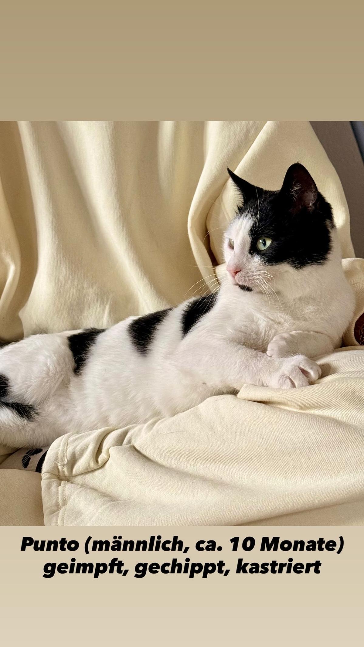 Punto ist ein liebevoller, verschmuster Kater, der gerne spielt. Anfangs kann er etwas schreckhaft sein, fasst aber schnell Vertrauen und sucht viel Nähe.