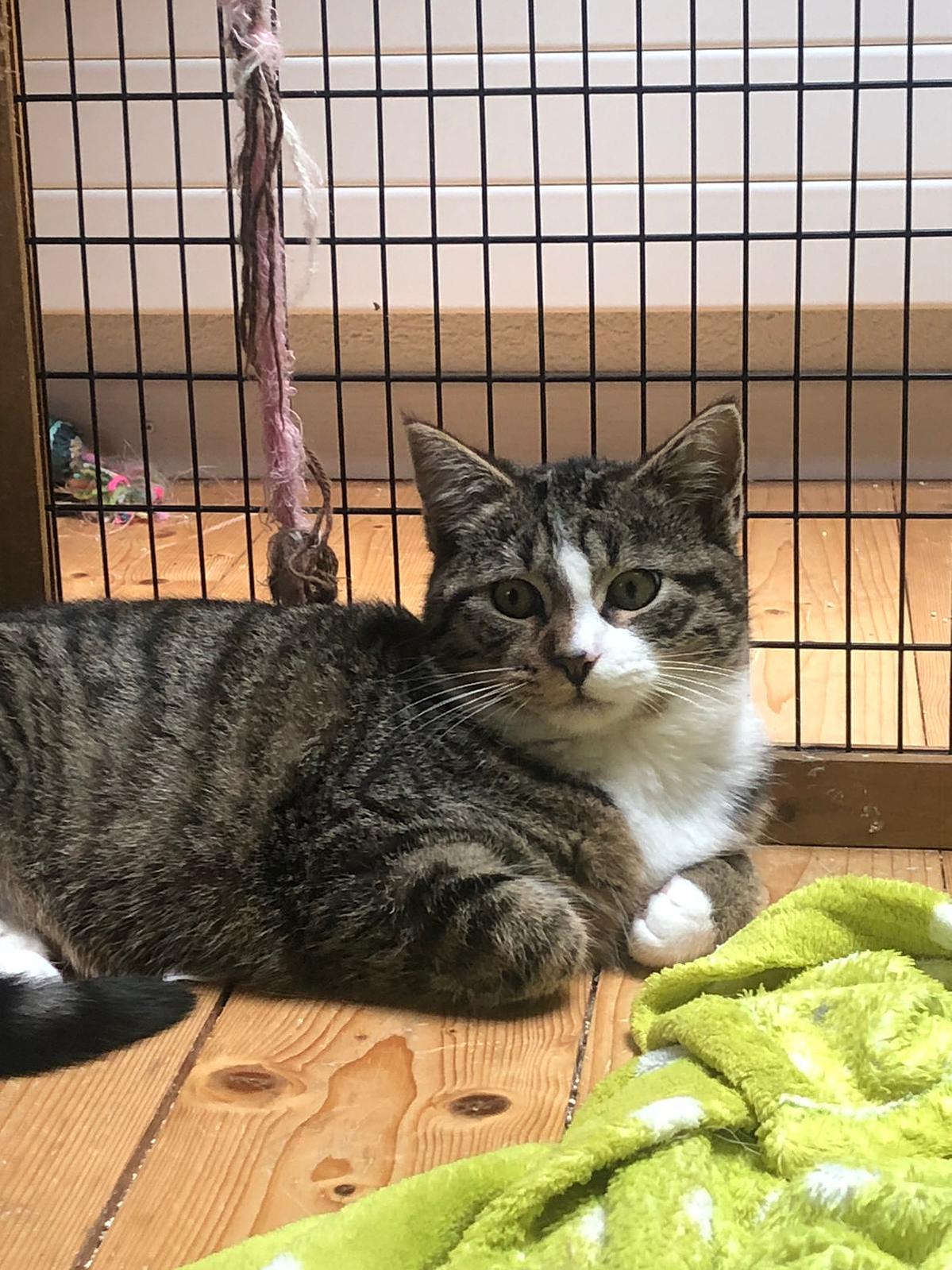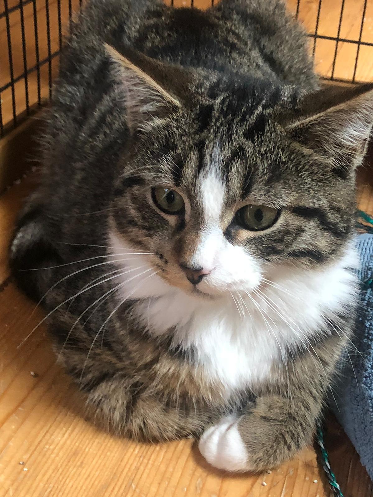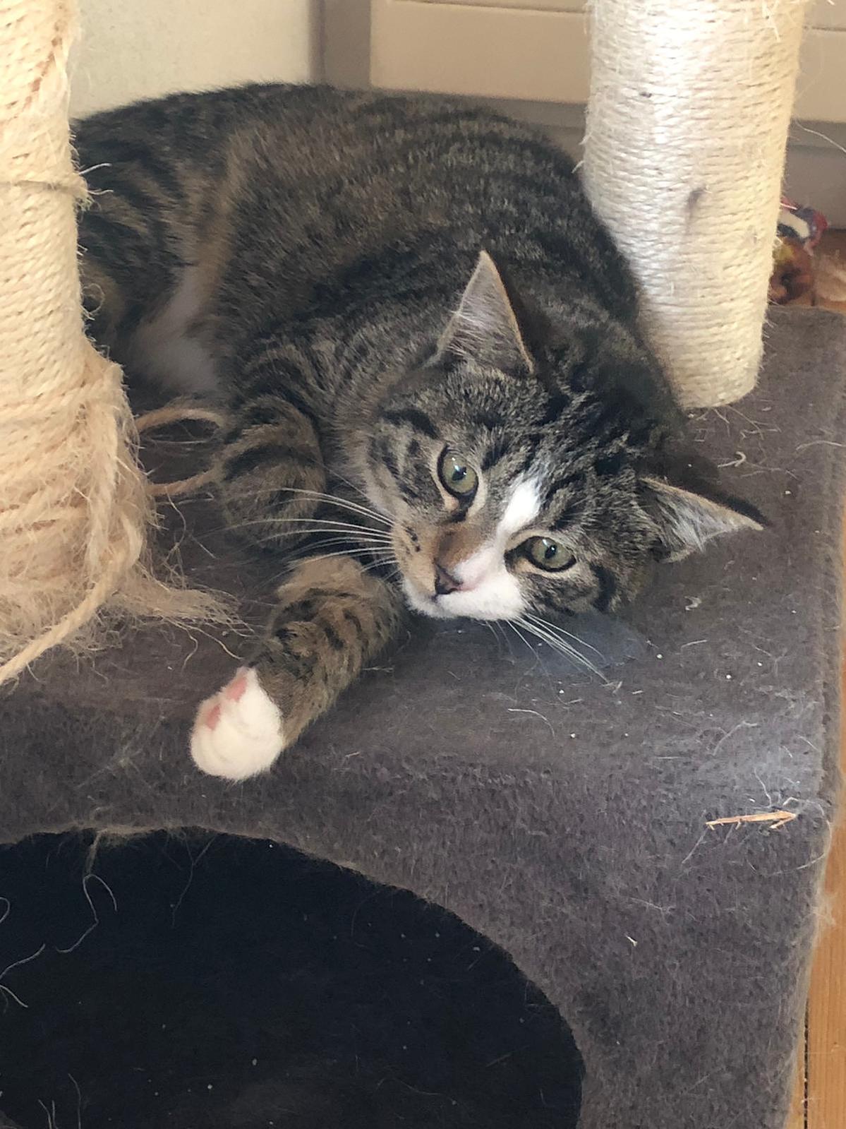 Ron, der kleine Tiger ist ein mugier junger Kater. Er sucht die Nähe zum Menschen sehr, eigentlich ist er immer da, wo ich bin. Streicheln ist ihm noch nicht ganz geheuer, aber das kommt schon noch. Er liebt es zu spielen, sei es mit mir, oder seinen Geschwistern. Da Ron schon ein paar Monate alt ist und draussen gelebt hat, braucht er wieder Freigang ohne gefährliche Hauptstrasse oder Bahngleise nebenan. Am liebsten bringt er einer seiner Freunde mit.