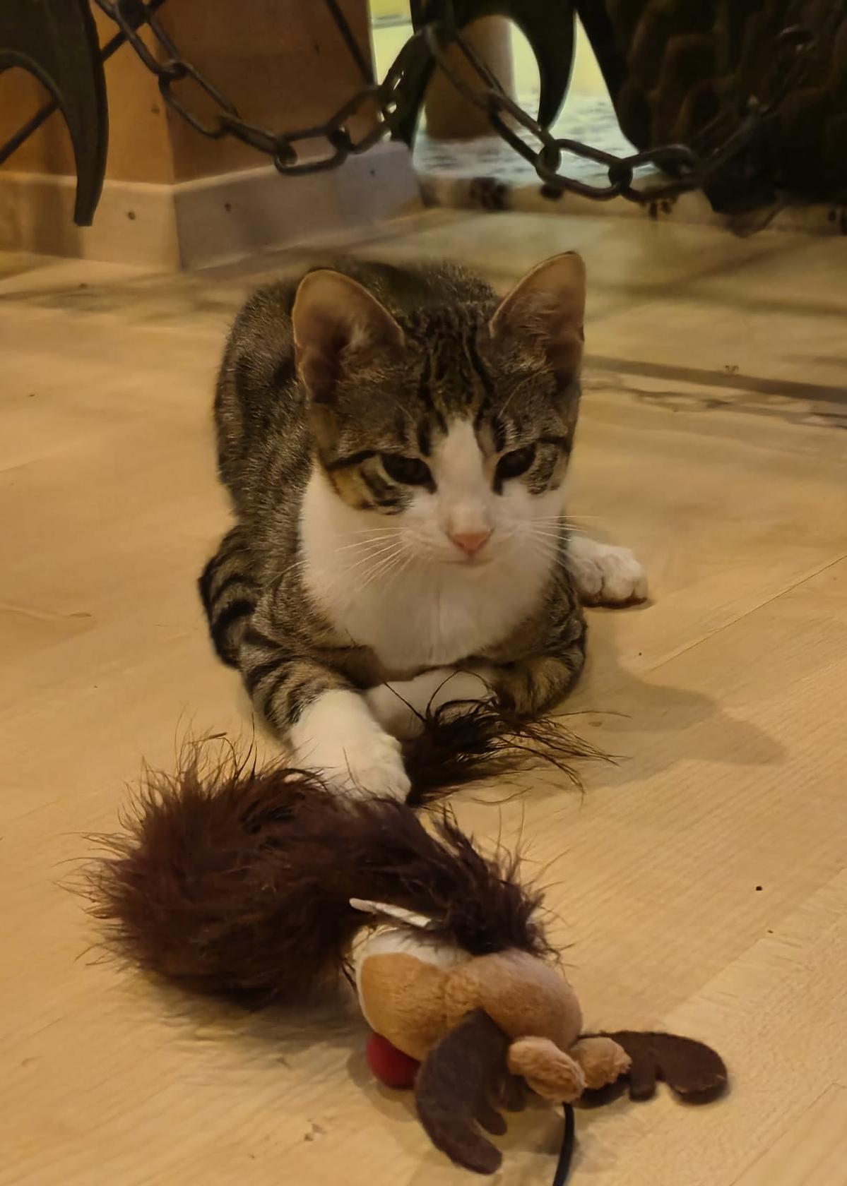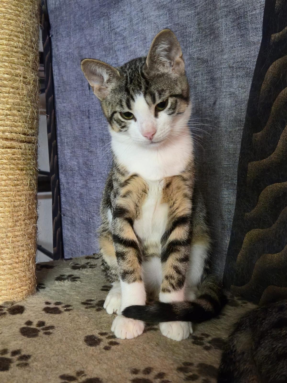 Sandy ist noch ängstlich, ist aber neugierig auf einen. Er beobachtet genau was man tut und würde sich auch gerne streicheln lassen aber ihm fehlt noch etwas Mut dazu. Sandy ist ein sehr niedlicher Kater, vor allem mit seinen weissen "Stiefelchen". Er benötigt ein ruhiges Zuhause mit Menschen, die ihm Liebe und Zeit geben um aufzutauen.