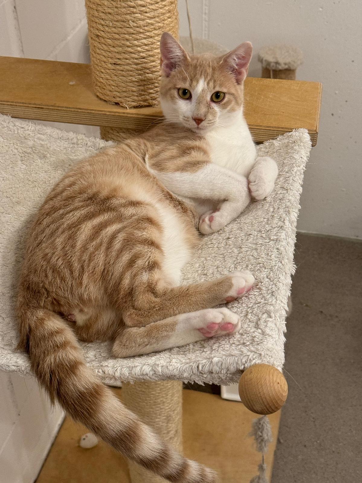 Sani ist ein sanfter gutmütiger Kater, er ist noch etwas zurückhaltend. Streicheln lässt er sich nur wenn er gemütlich irgendwo liegt und entspannt, dann genießt er es so richtig.