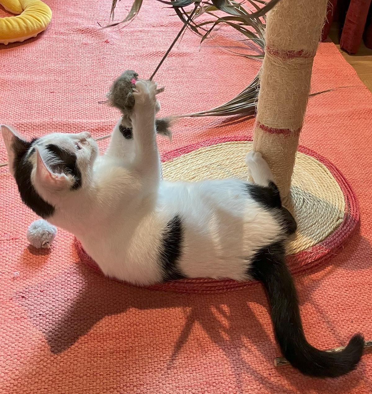 Simi ist ein sehr aktives, sebstbestimmtes und verschmustes Kitten, sie spielt und kuschelt sehr gerne und ist wagemutig. Sie möchte mit ihrem Bruder Flipsi zusammen vermittelt werden. Beide sind geeignet für Familien mit kleinen Kindern.