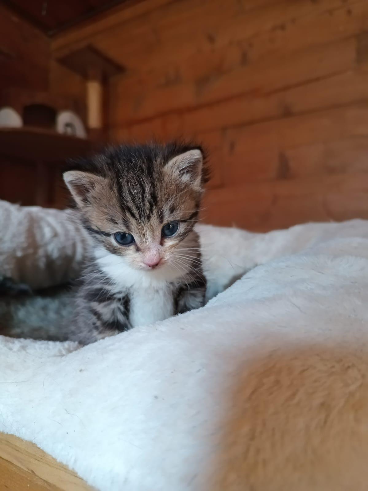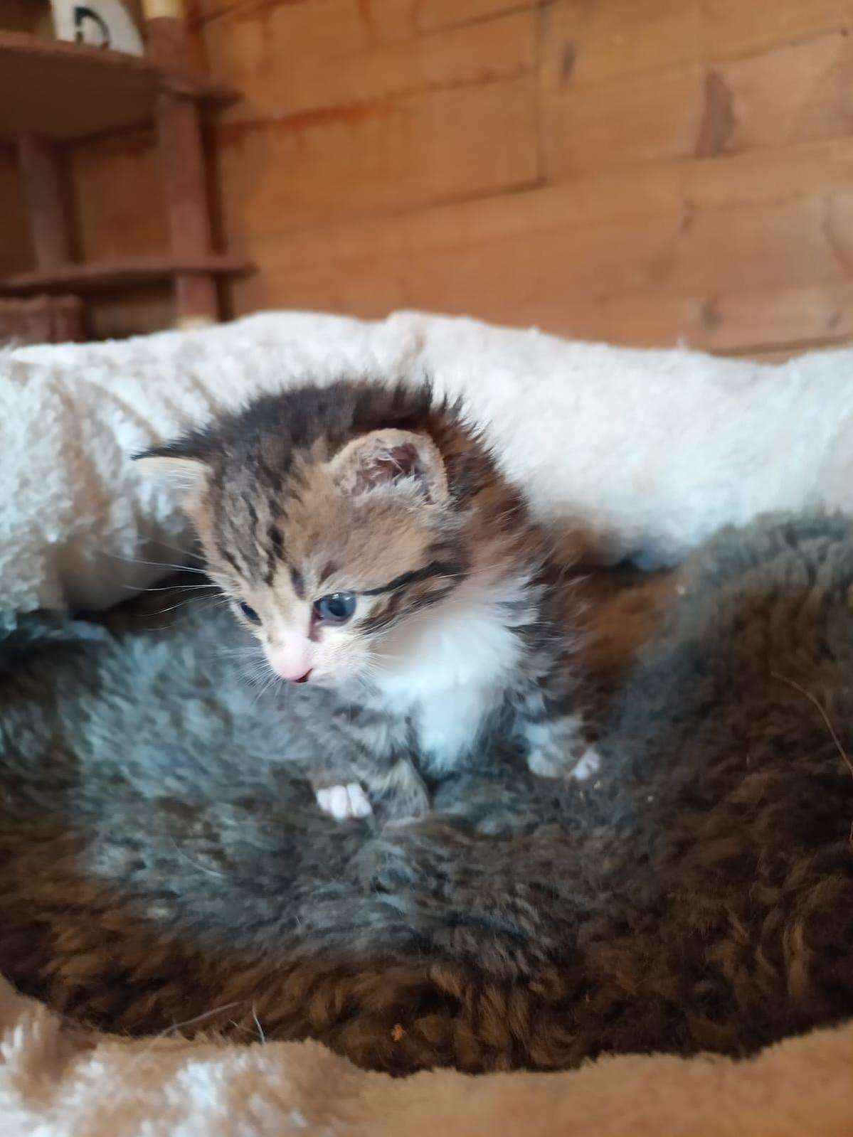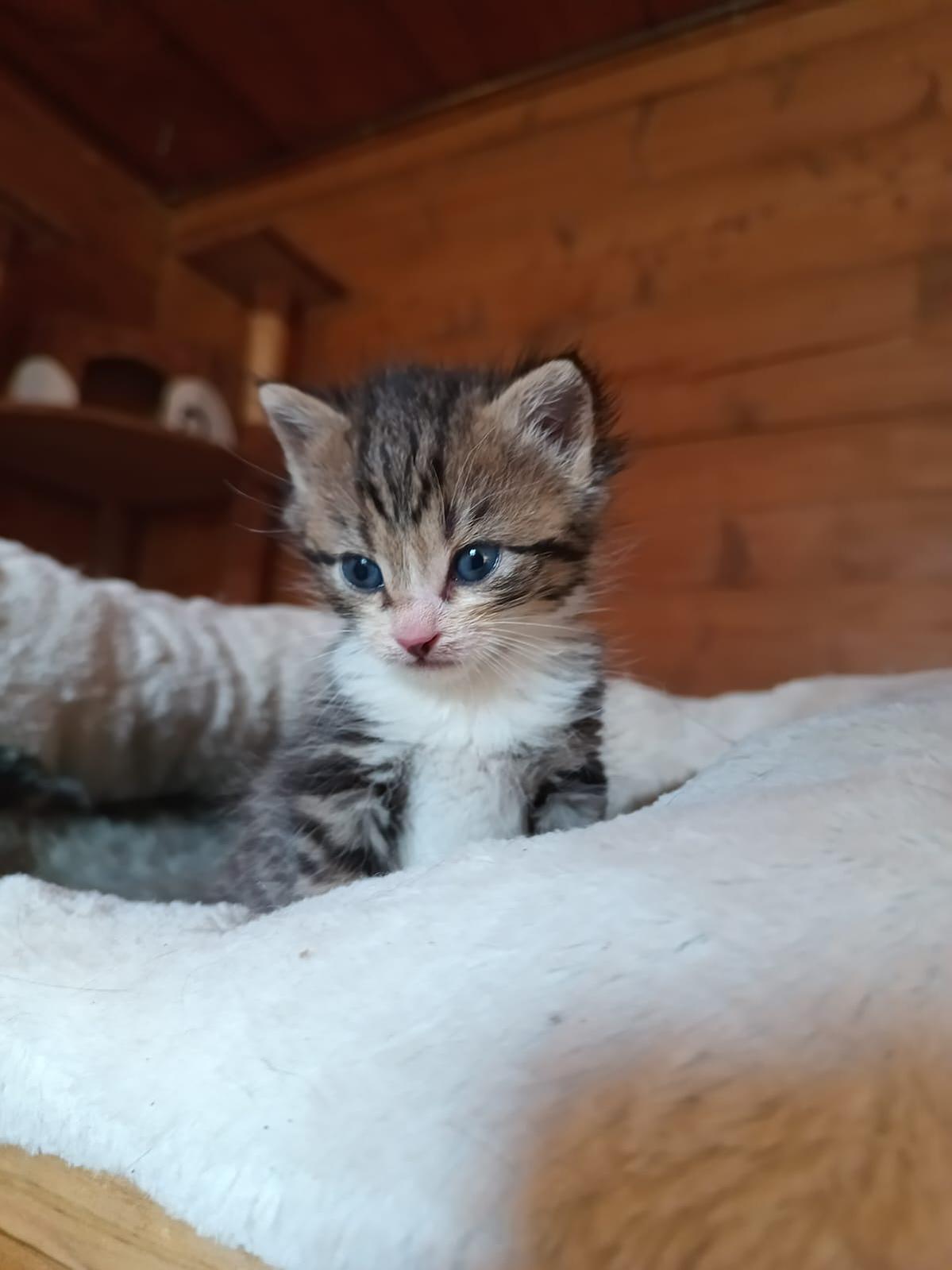 Wir wurden von einem Bauernhof um Hilfe angefragt, leider hatte seine Kätzin ihre 4 Kitten verstossen diese waren erst 2 Wochen alt und mussten unbedingt geschöppelt werden. Da der Bauer zu wenig Zeit hatte, um die Kitten mit dem Shoppen aufzuziehen, hat er uns um Hilfe angefragt. Die Kätzin wurde jetzt kastriert und darf dortbleiben. Die vier Kitten wurden uns zur Aufzucht und Vermittlung übergeben.