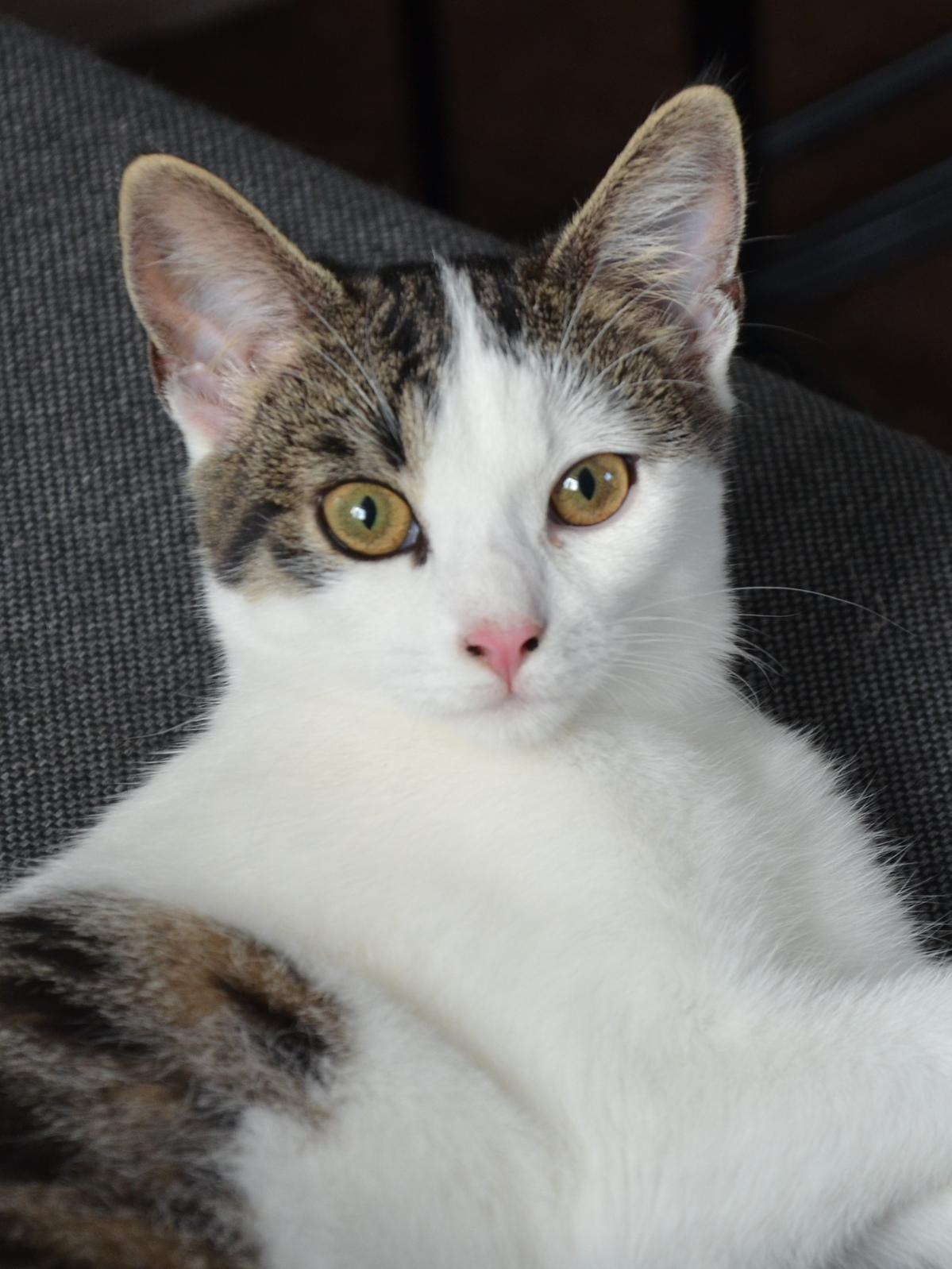 Vivrin ist eine liebe, aufgestellte und verspielte junge Katze. Sie kommt gern zum Schmusen, aber wenn sie zwischen Schmusen und Spielen wählen kann, dann wählt sie das Spiel. Sie ist auch eine ausgezeichnete Fliegenjägerin! Wenn sie genug hat vom Streicheln, stösst sie die Hand ganz sanft mit ihrer Pfote beiseite. Vivrin ist sehr interessiert an anderen Katzen und würde gern mit ihnen Verfolgungsjagd spielen, sie sucht deshalb ein Zuhause bei mindestens einer anderen jungen Kätzin. Am liebsten mit Freigang in einer verkehrsarmen Gegend, oder zumindest mit einem grossen und interessanten, gesichterten Balkon.