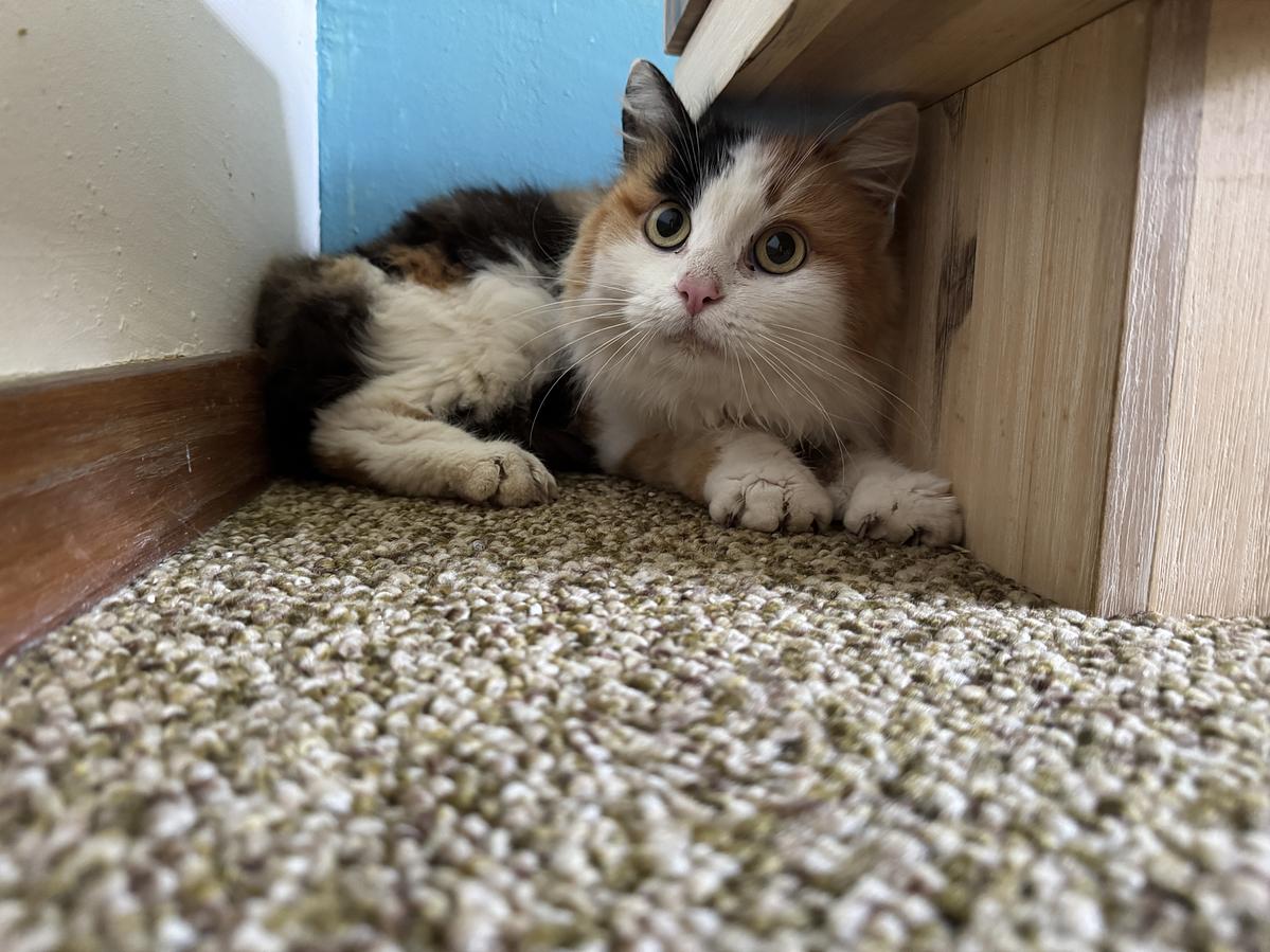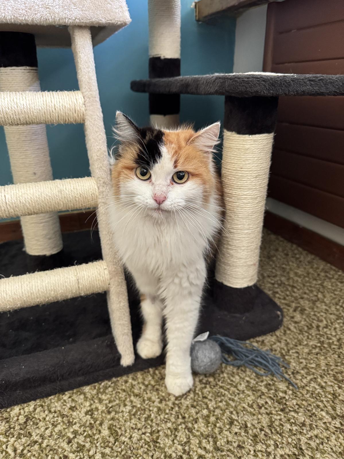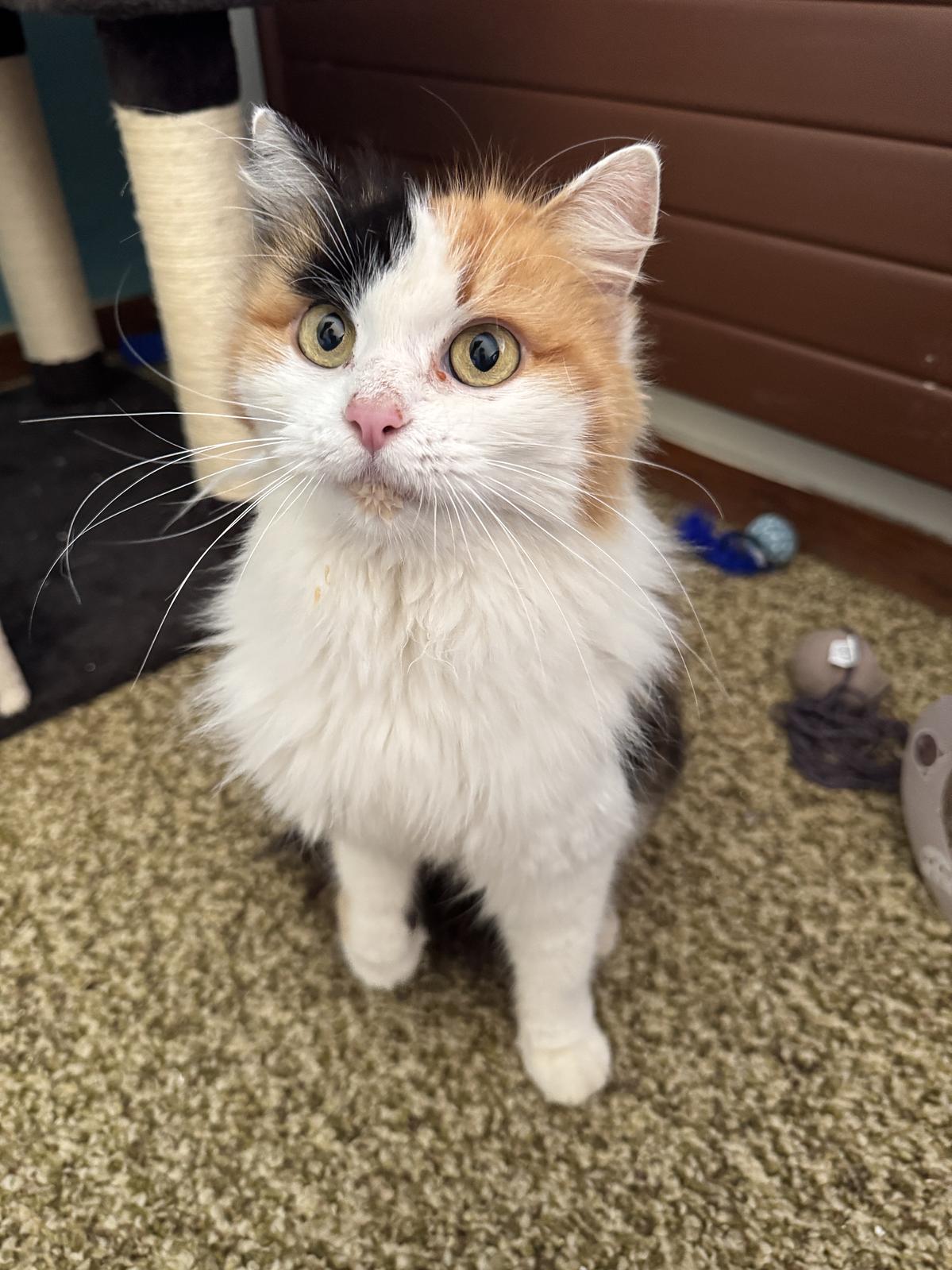Wuscheli wurde im Wald in der Nähe von ihrem vorherigen Wohnort eingefangen, nachdem sie von dort "ausgebrochen" war und mehrere Wochen wild gelebt hat. Da die vorherige Besitzerin die Katze nicht mehr zurück wollte, haben wir sie aufgenommen und suchen für sie nun ein liebevolles neues Zuhause. Sie wurde durch uns nun kastriert.